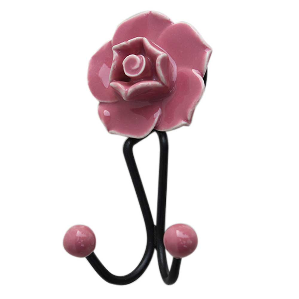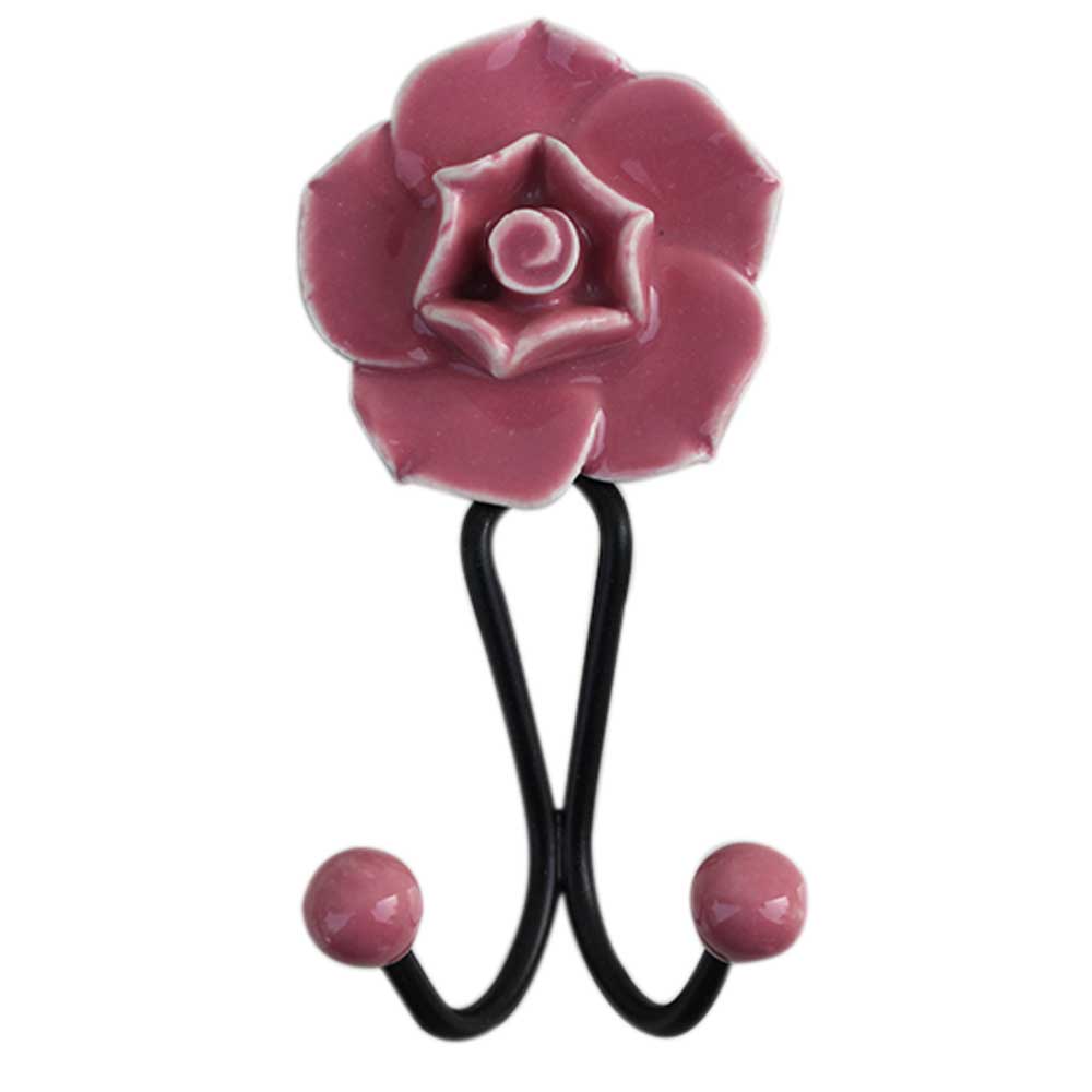 Pink Flower Hook . When Put on Wall or Cabinet It is An Art in Itself. This Black Powder Coated Iron Hook is Strong Enough to Hold Your Cloths