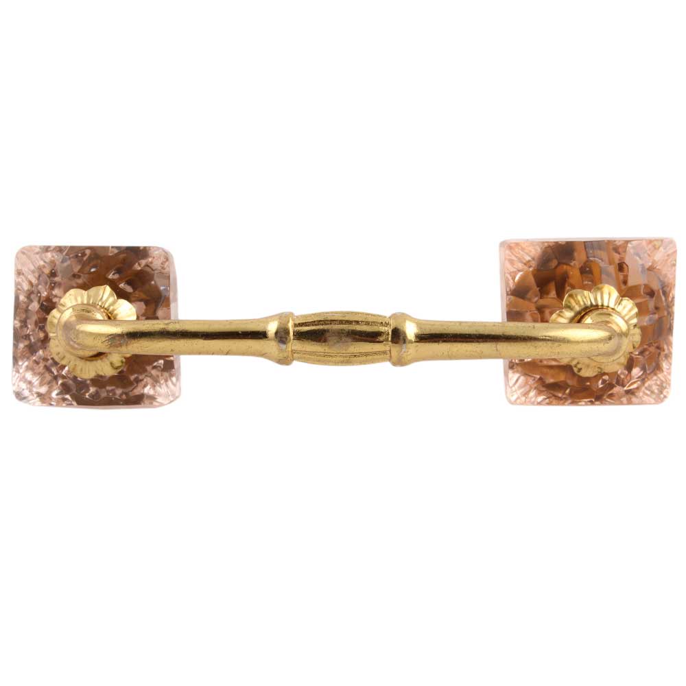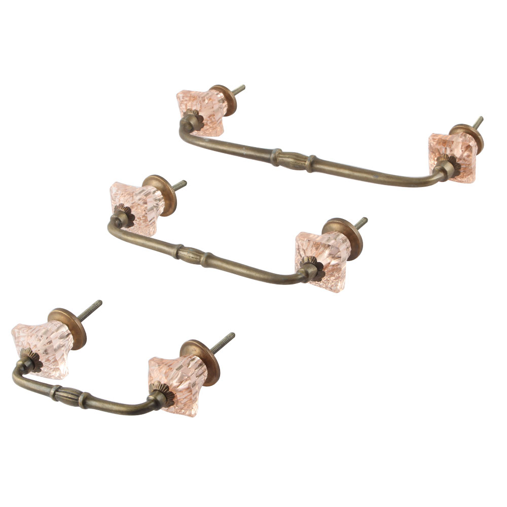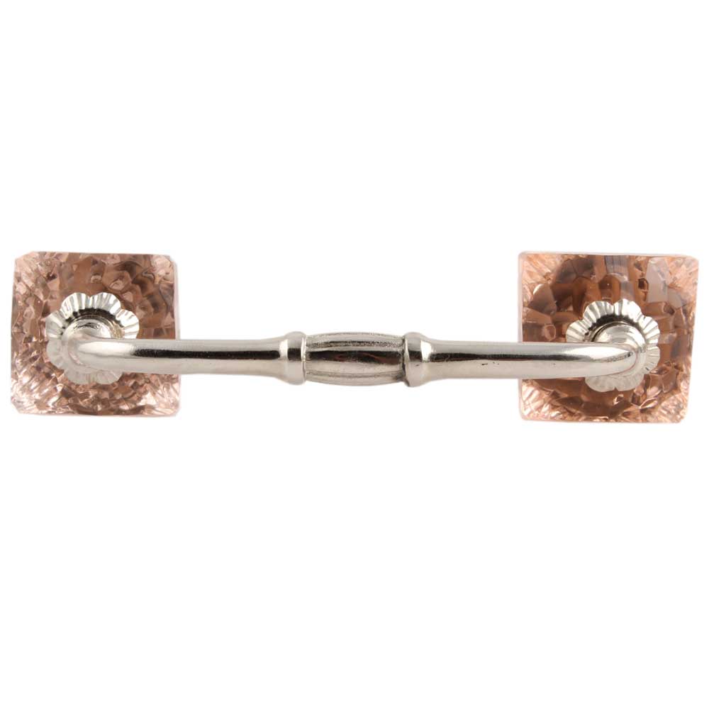 Pink Glass Square Cut Bridge Handle. Ideal for Drawer, Dresser, Cabinet, Wardrobe, Cupboard and Almirah.