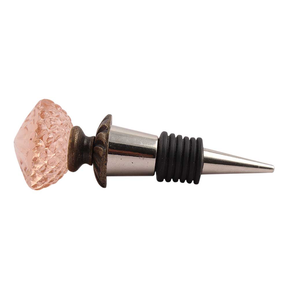 Pink Glass Wine Stopper.zinc alloy wine bottle stopper with attractive Jute Bag Packaging.