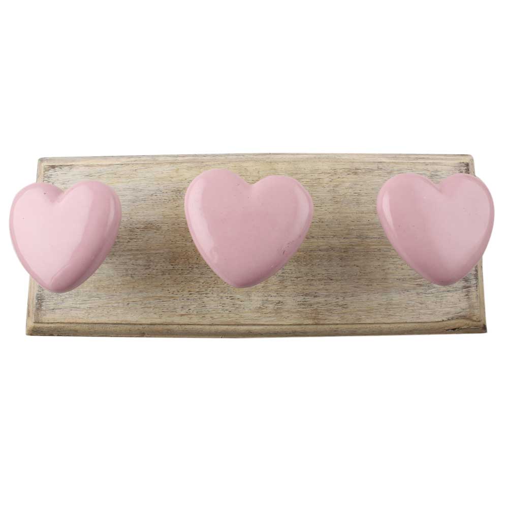 Pink Heart Ceramic Wooden Hook. A Perfect Complement to the Soft Tone of the Wood are these White Traditional Hat and Coat Hook Made of Genuine Porcelain and Brass. It can be used to Hang Jewelry, Leashes, Towels, Scarves, Light Weight Sweaters, Caps etc.