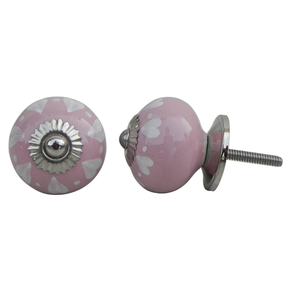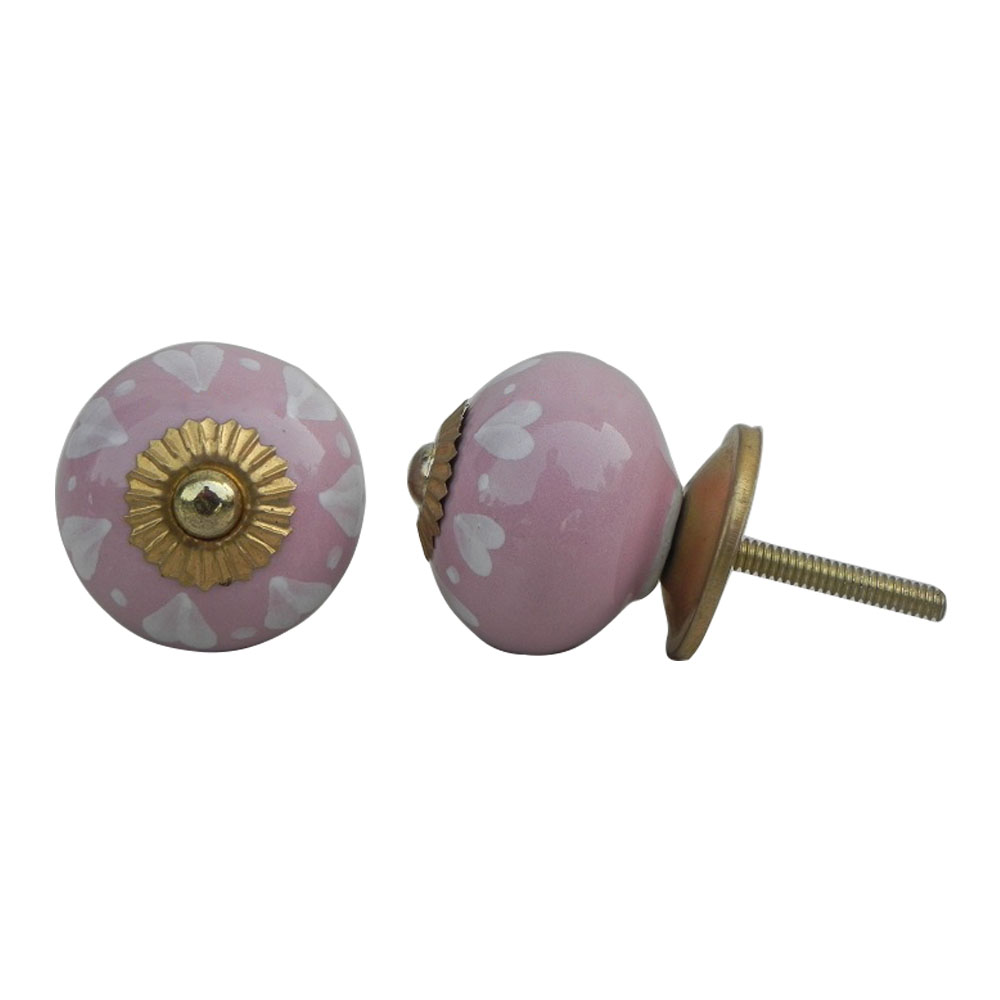 Pink Heart Dot Ceramic Knob. Ideal for kitchen cabinets, kitchen drawers, dining room, bed room, chest drawers, dressing tables, almirah