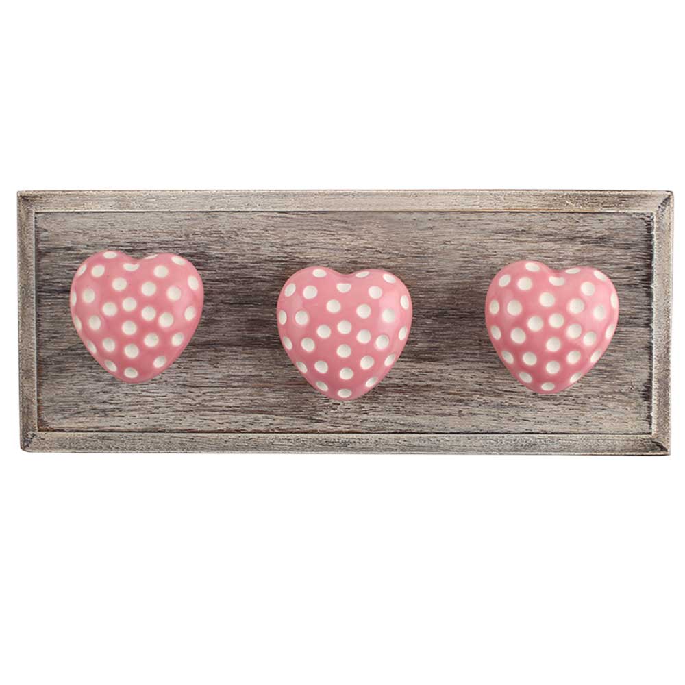 Pink Heart Etched Ceramic Wooden Hook. A Perfect Complement to the Soft Tone of the Wood are these White Traditional Hat Coat Hook Made of Genuine Porcelain and Brass. It can be use to Hang Jewellery, Leashes, Towels, Scarves, Light Weight Sweaters, Caps Etc.
