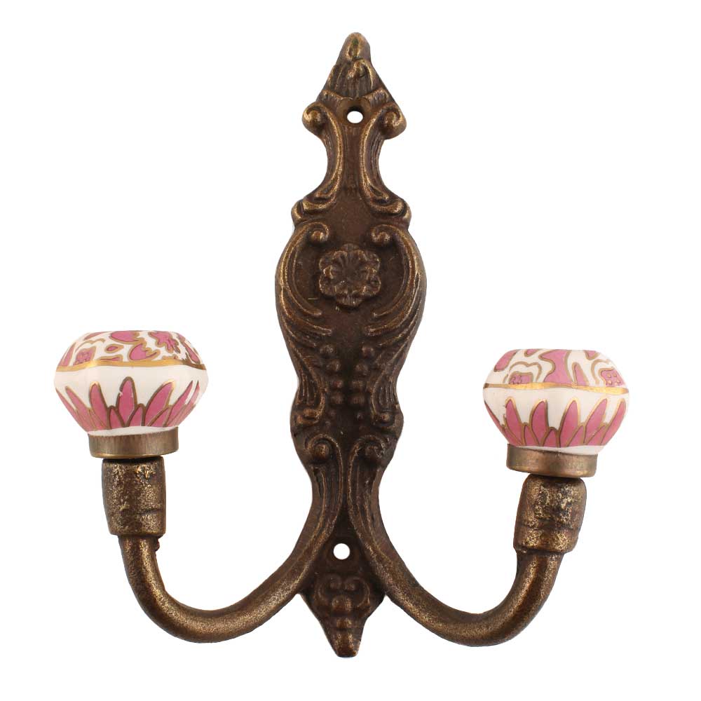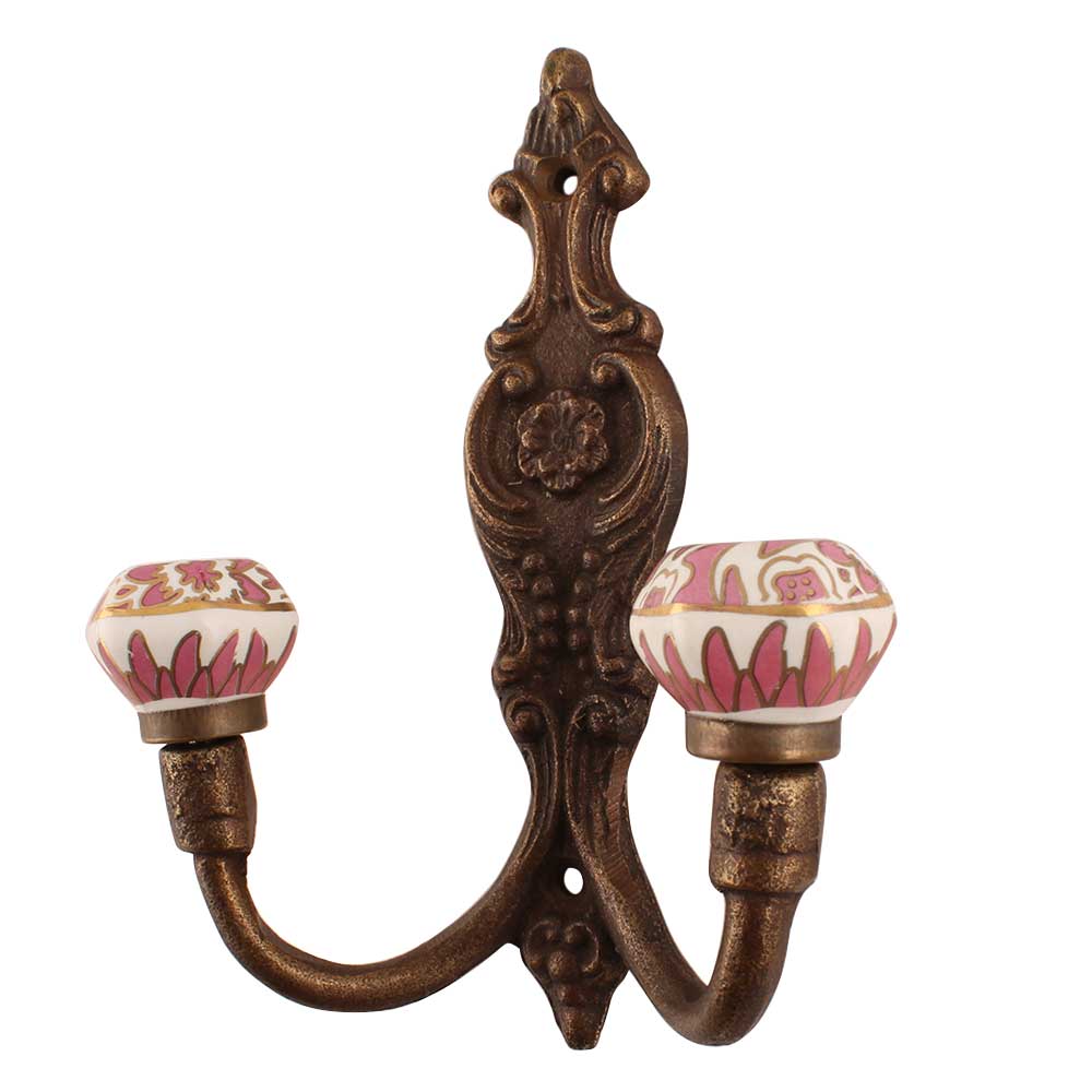 Pink Hexagon Small Ceramic Iron Hook. When Put on Wall or Cabinet It Gives A Sturdy Look. This Hook is Strong Enough to Hold Your Cloths, Keys, Tea Cups, Coffee Mugs, Hand Towels etc.