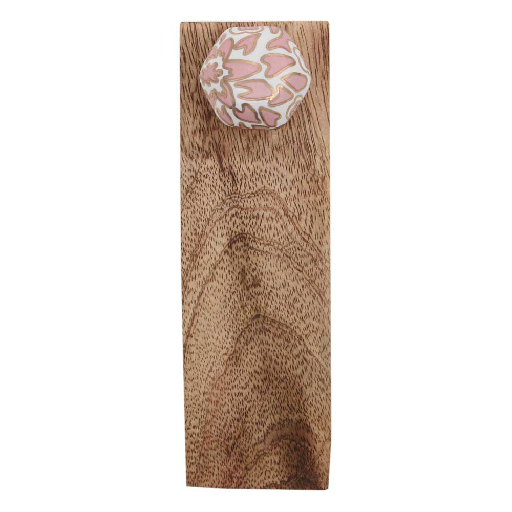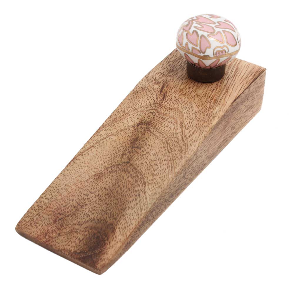 Handmade Ceramic Wooden Door Stopper.Wooden Door Stopper with a Ceramic Knob to Carry it Easily. This Wooden Door Stopper has Glue Dots under it to Ensure that it does not Slip. It is Handmade by the Craftsmen of India and this Innovative Door Stopper won't Disappoint You.