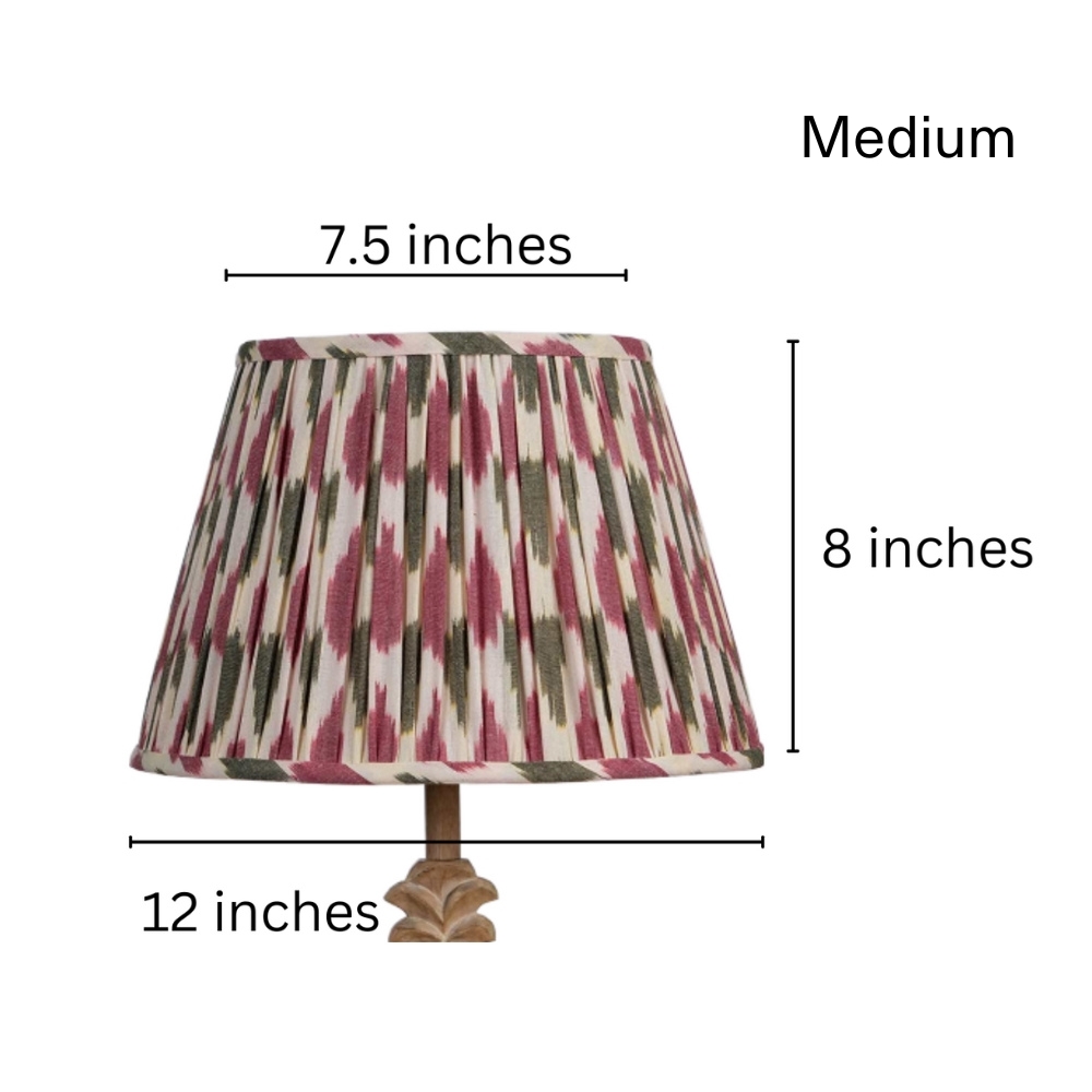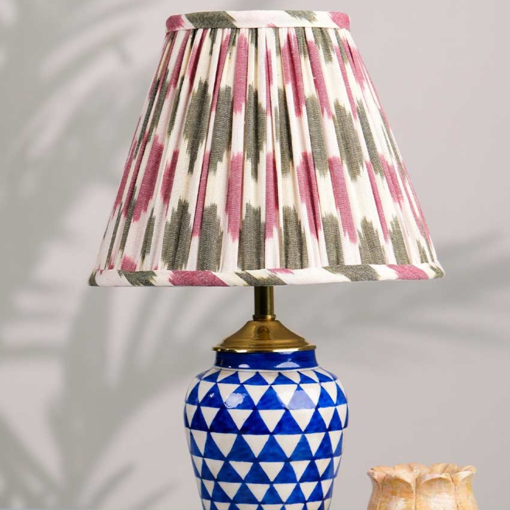 Soft pink shades balanced with a touch of gray makes this lampshade in Ikat pattern weaved by artisans of Andhra Pradesh, makes it stand out to highlight your space with warmth. A perfect conversation starter. Available in 3 sizes.