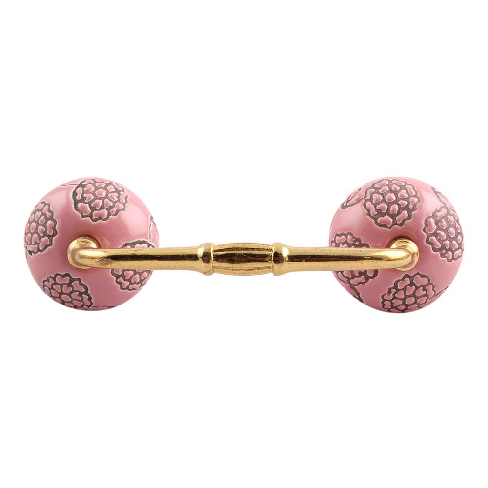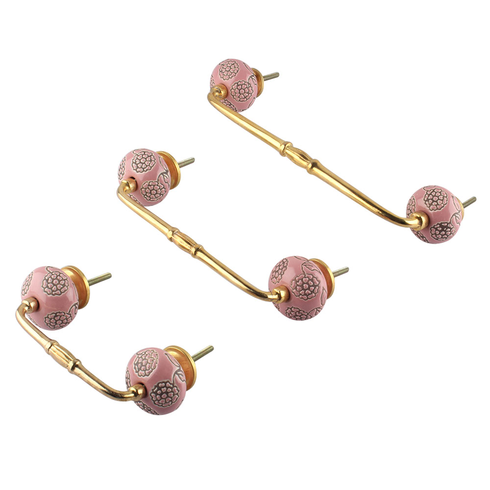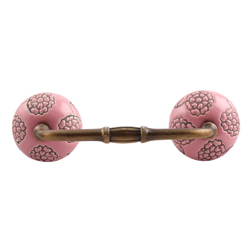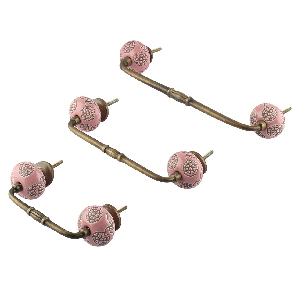Pink Marigold Etched Ceramic Bridge Handle. Ideal for Drawer, Dresser, Cabinet, Wardrobe, Cupboard and Almirah.