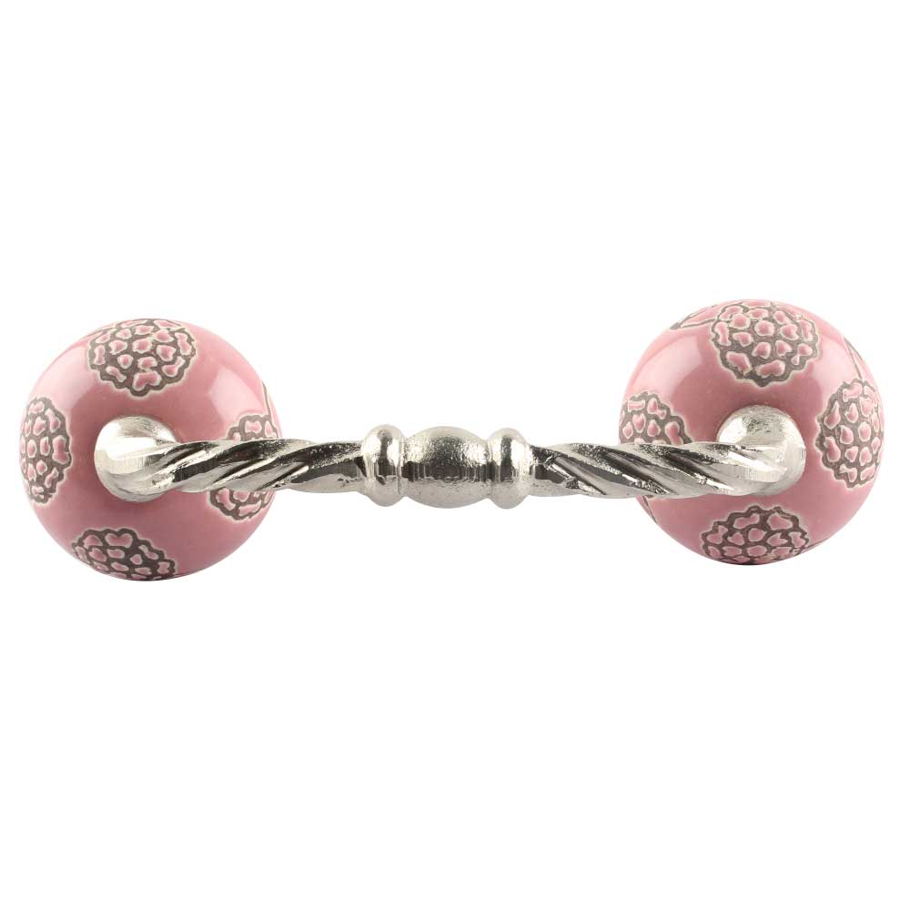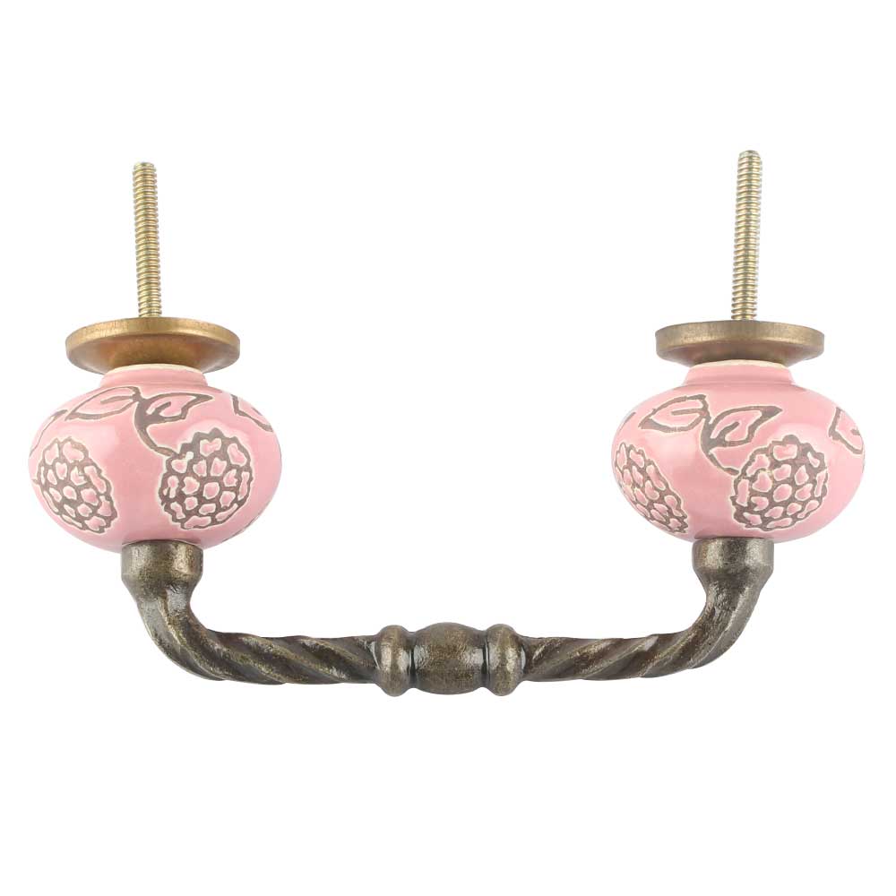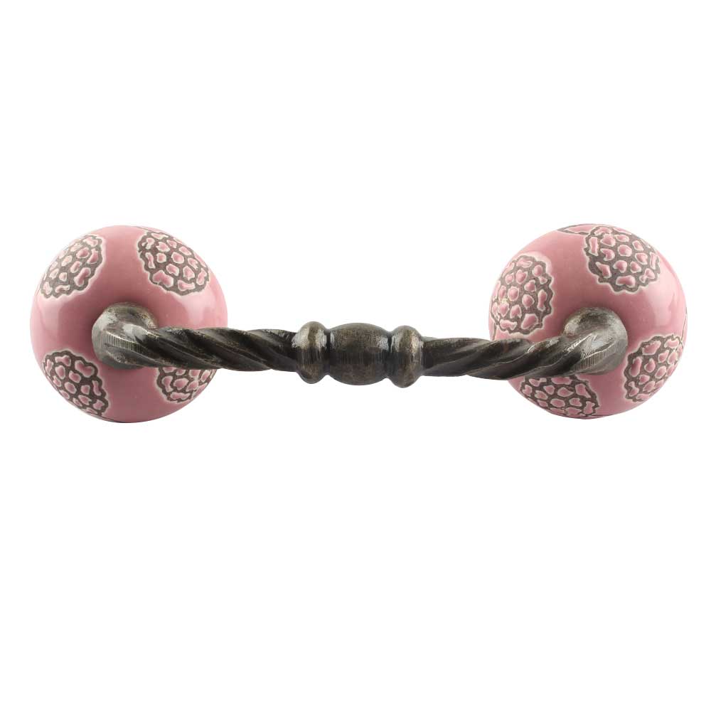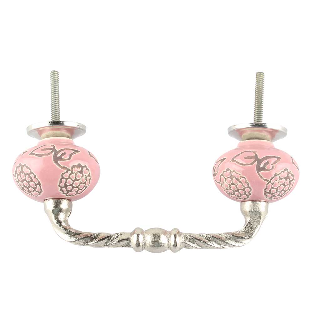 Pink Marigold Etched Ceramic Cut Bridge Handle. Ideal for Drawer, Dresser, Cabinet, Wardrobe, Cupboard and Almirah etc.