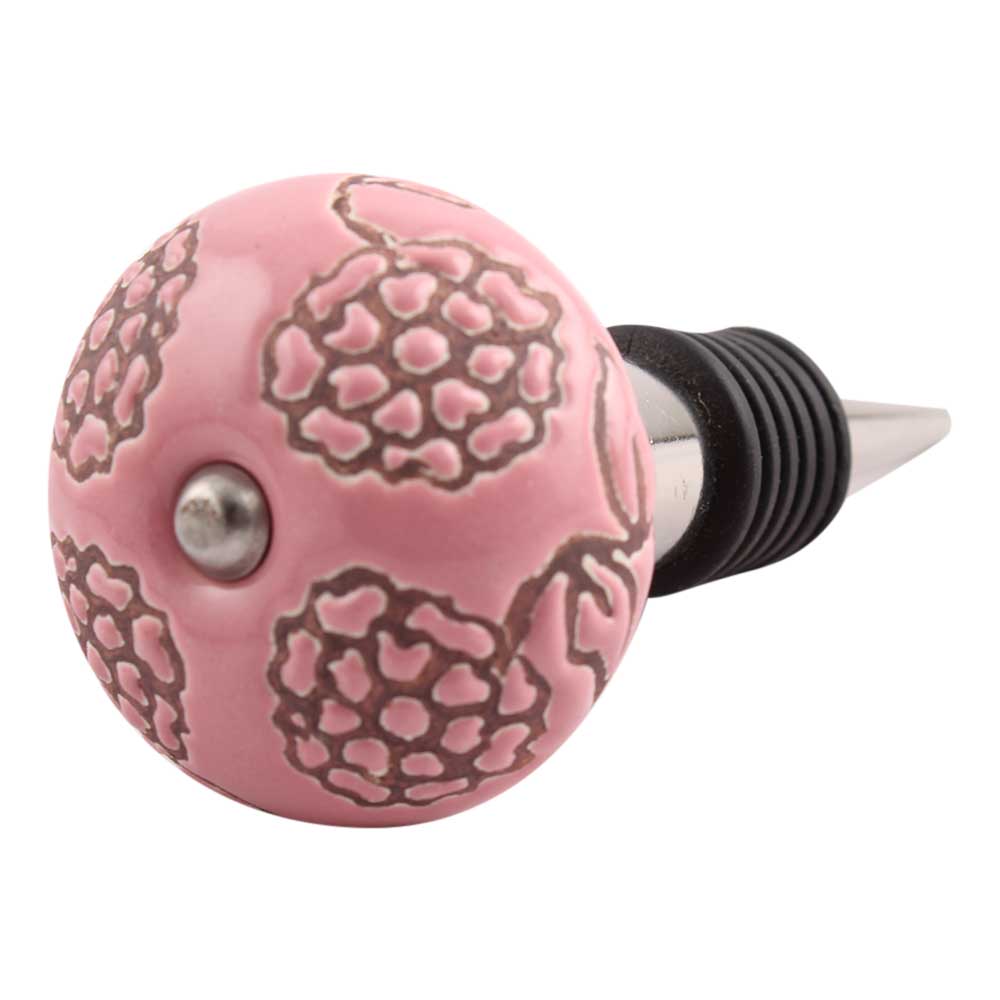 Pink Marigold Etched Ceramic Wine Stopper.zinc alloy wine bottle stopper with attractive Jute Bag Packaging.