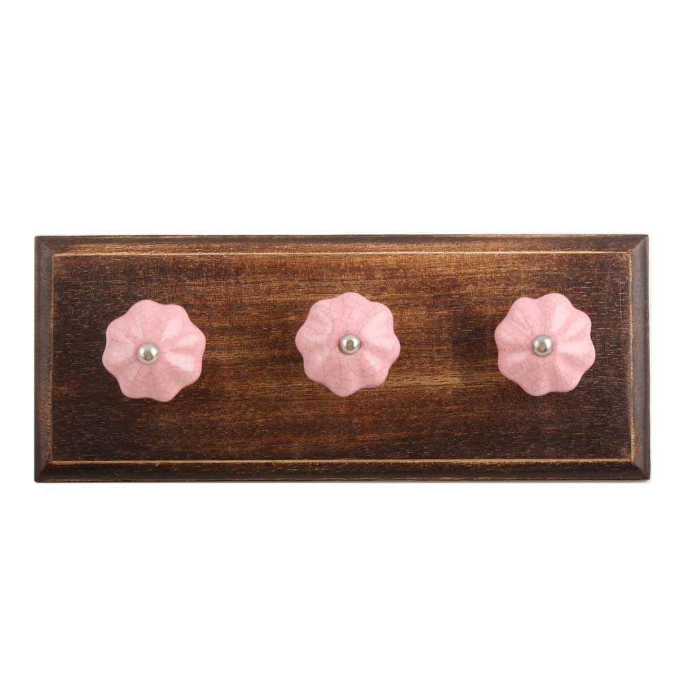 Pink Melon Crackle Ceramic Wooden Hook. A Perfect Complement to the Soft Tone of the Wood are these White Traditional Hat & Coat Hook Made of Genuine Porcelain and Brass. It can be use to Hang Jewellery, Leashes, Towels, Scarves, Light Weight Sweaters, Caps Etc.