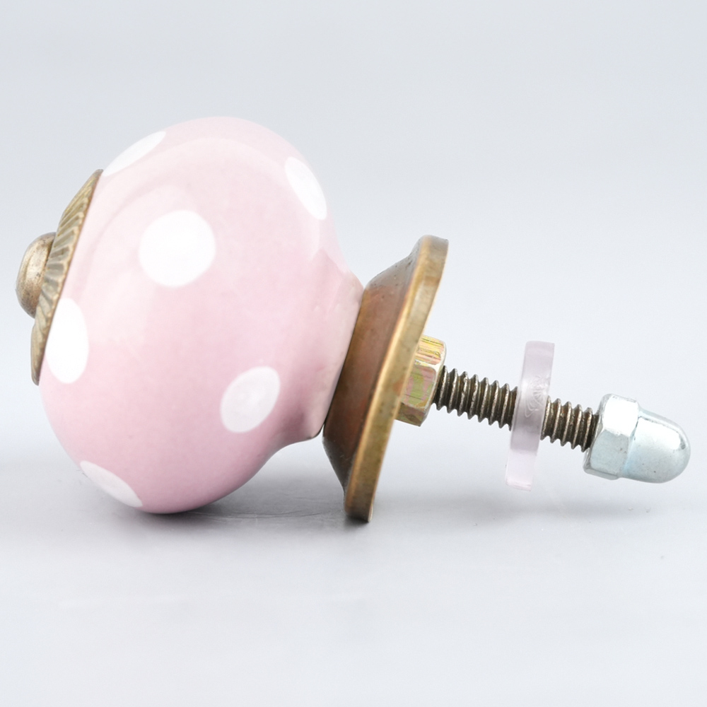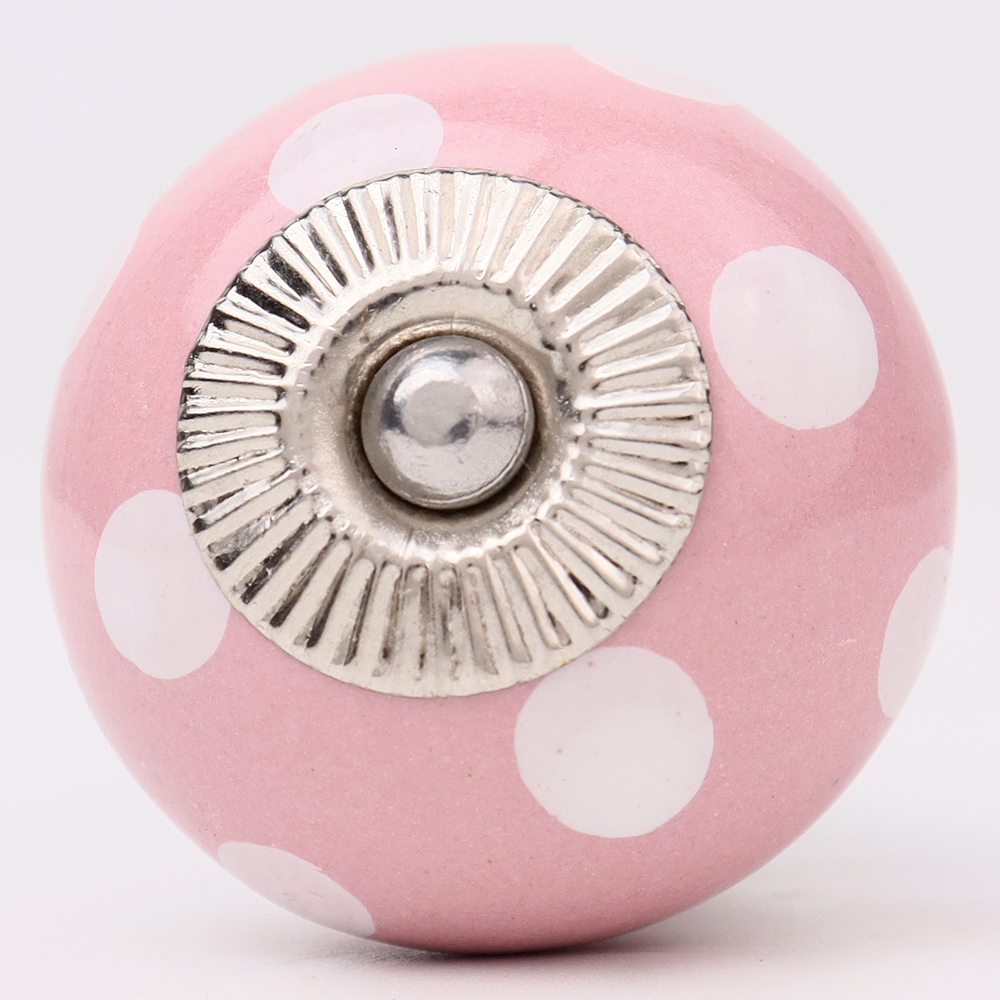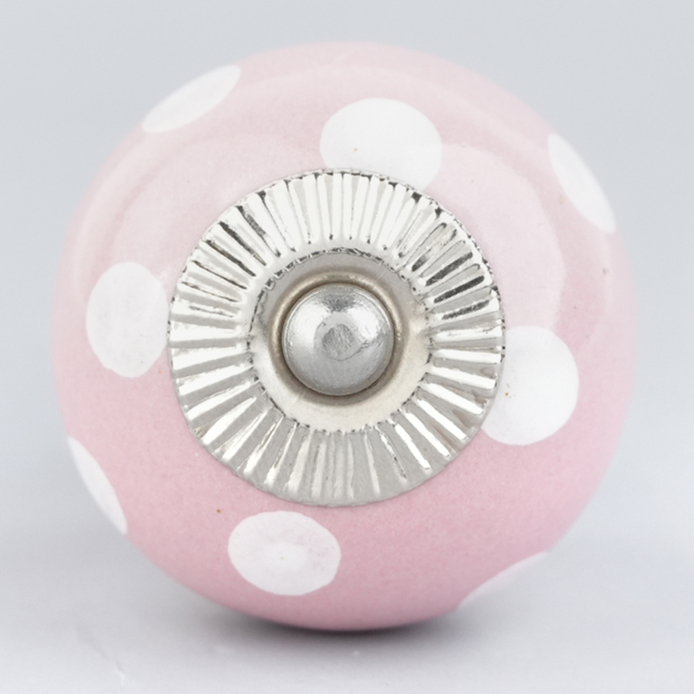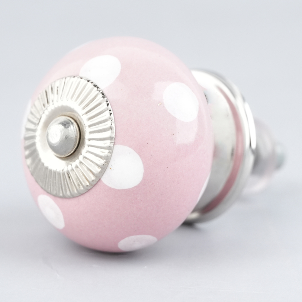 Pink Polka Dotted Small Ceramic Cabinet Knobs. Ideal for Drawer, Dresser, Cabinet, Wardrobe, Cupboard and almirah