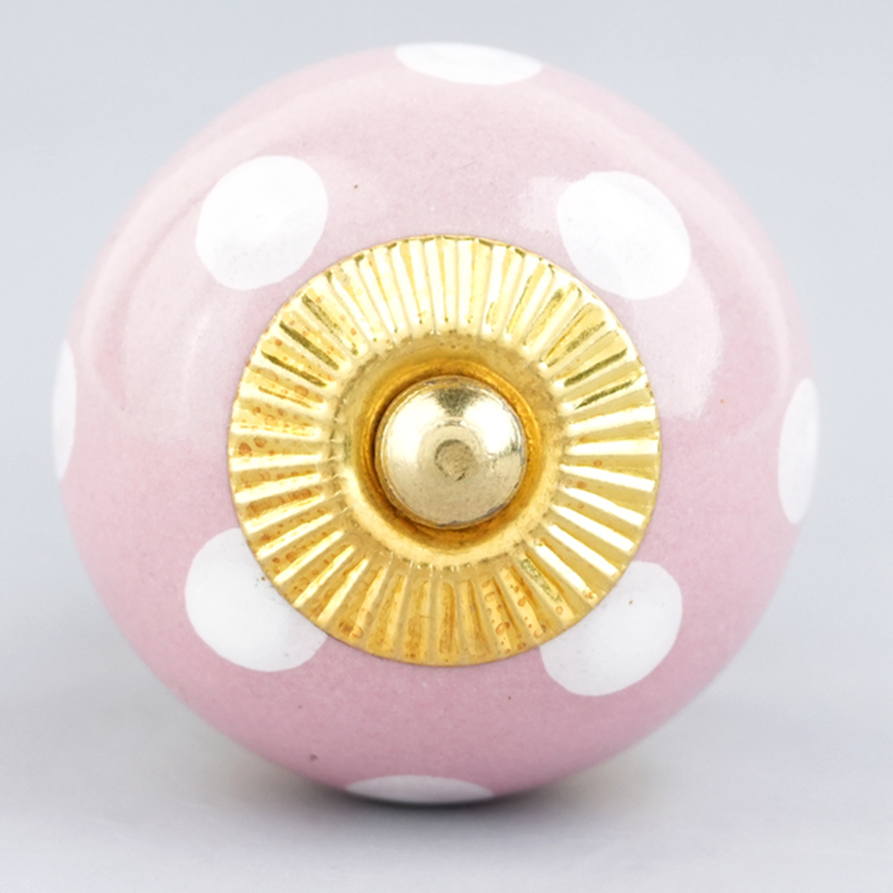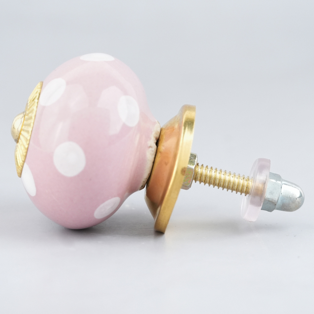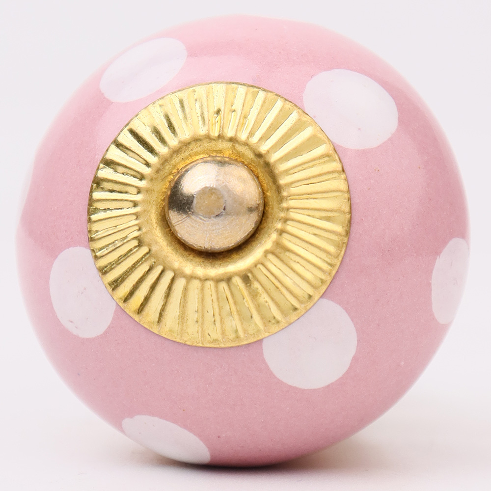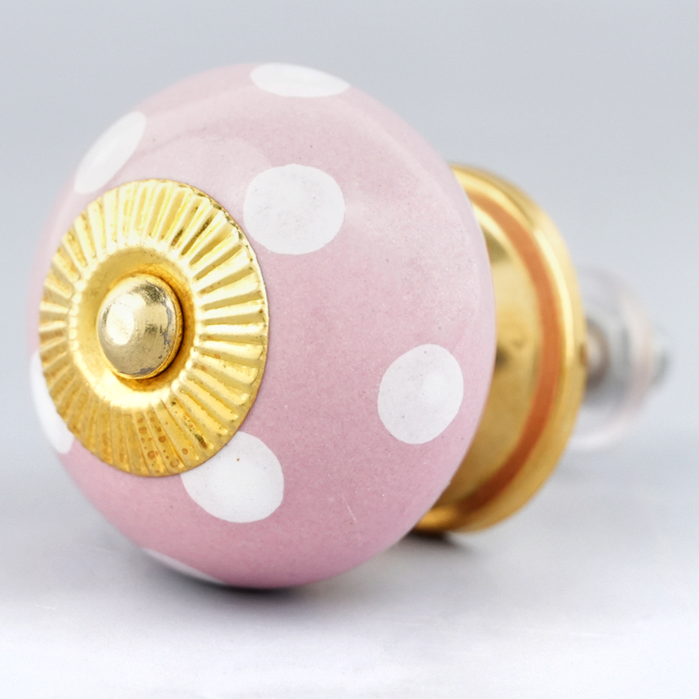 Pink Polka Dotted Small Ceramic Cabinet Knobs. Ideal for Drawer, Dresser, Cabinet, Wardrobe, Cupboard and almirah