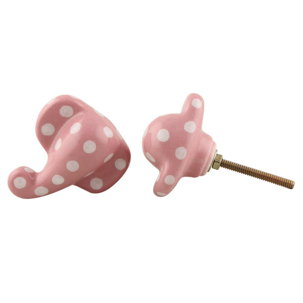 This pink polka elephant face knob is meticulously handcrafted by the artisans of India. This kitchen cabinet knob and pull adds a vintage charm and functionality to your furniture to suit the different interior settings and moods. Rust-free, long-lasting and easy applicable.