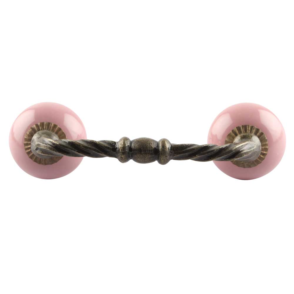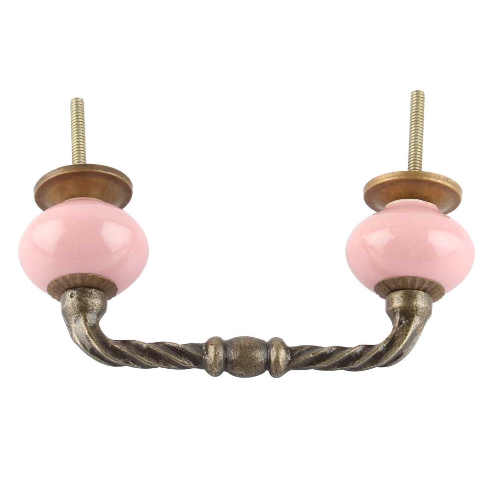 Pink Round Ceramic Cut Bridge Handles. Ideal for Drawer, Dresser, Cabinet, Wardrobe, Cupboard and Almirah etc.
