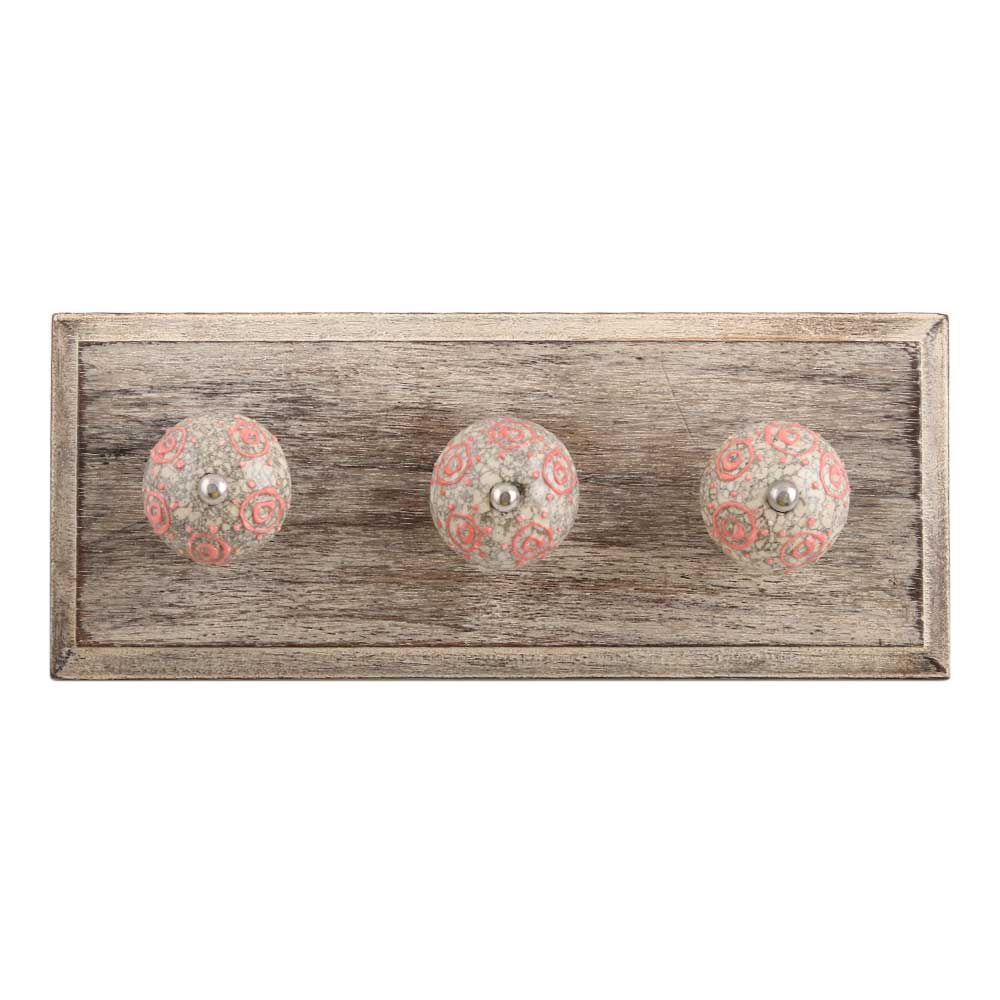 Pink Round Crackle Ceramic Wooden Hook. A Perfect Complement to the Soft Tone of the Wood are these White Traditional Hat and Coat Hook Made of Genuine Porcelain and Brass. It can be used to Hang Jewelry, Leashes, Towels, Scarves, Light Weight Sweaters, Caps etc.