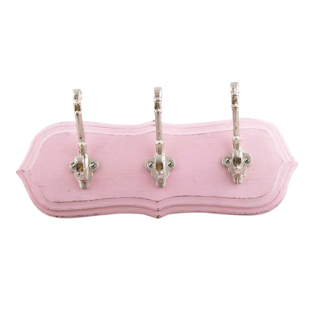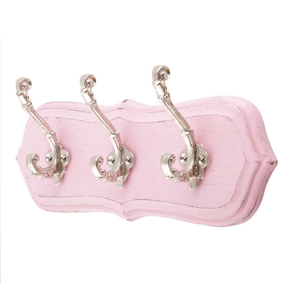 Pink And Silver Small Wall Wooden Iron Hooks. A Perfect Complement to the Soft Tone of the Wood are these White Traditional Hat & Coat Hook Made of Genuine Porcelain and Brass. It can be use to Hang Jewellery, Leashes, Towels, Scarves, Light Weight Sweaters, Caps Etc.