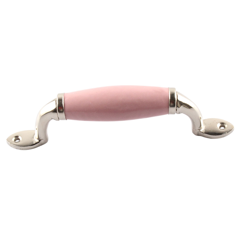 Pink Small Ceramic Silver Door Handles. Ideal for Drawer, Dresser, Cabinet, Wardrobe, Cupboard and Almirah