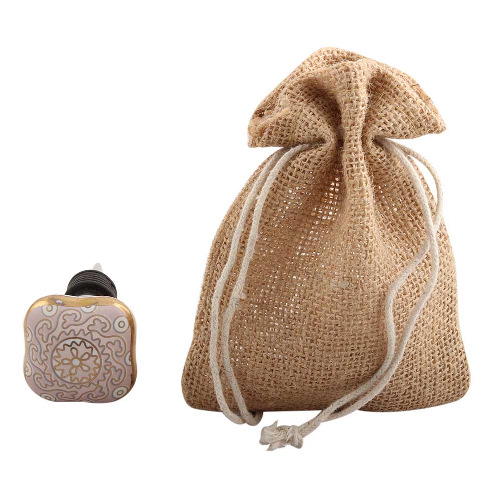 Pink Square Ceramic Floral Wine Stopper. Zinc Alloy Wine Bottle Stopper with Attractive Jute Bag Packaging.