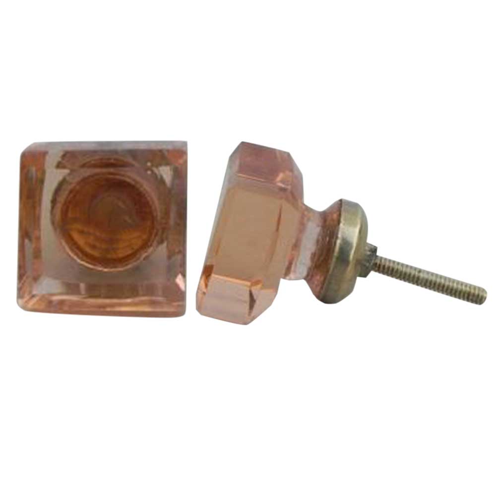 Pink Square Glass Knobs. Ideal for Drawer, Dresser, Cabinet, Wardrobe, Cupboard and almirah