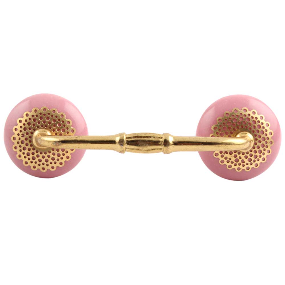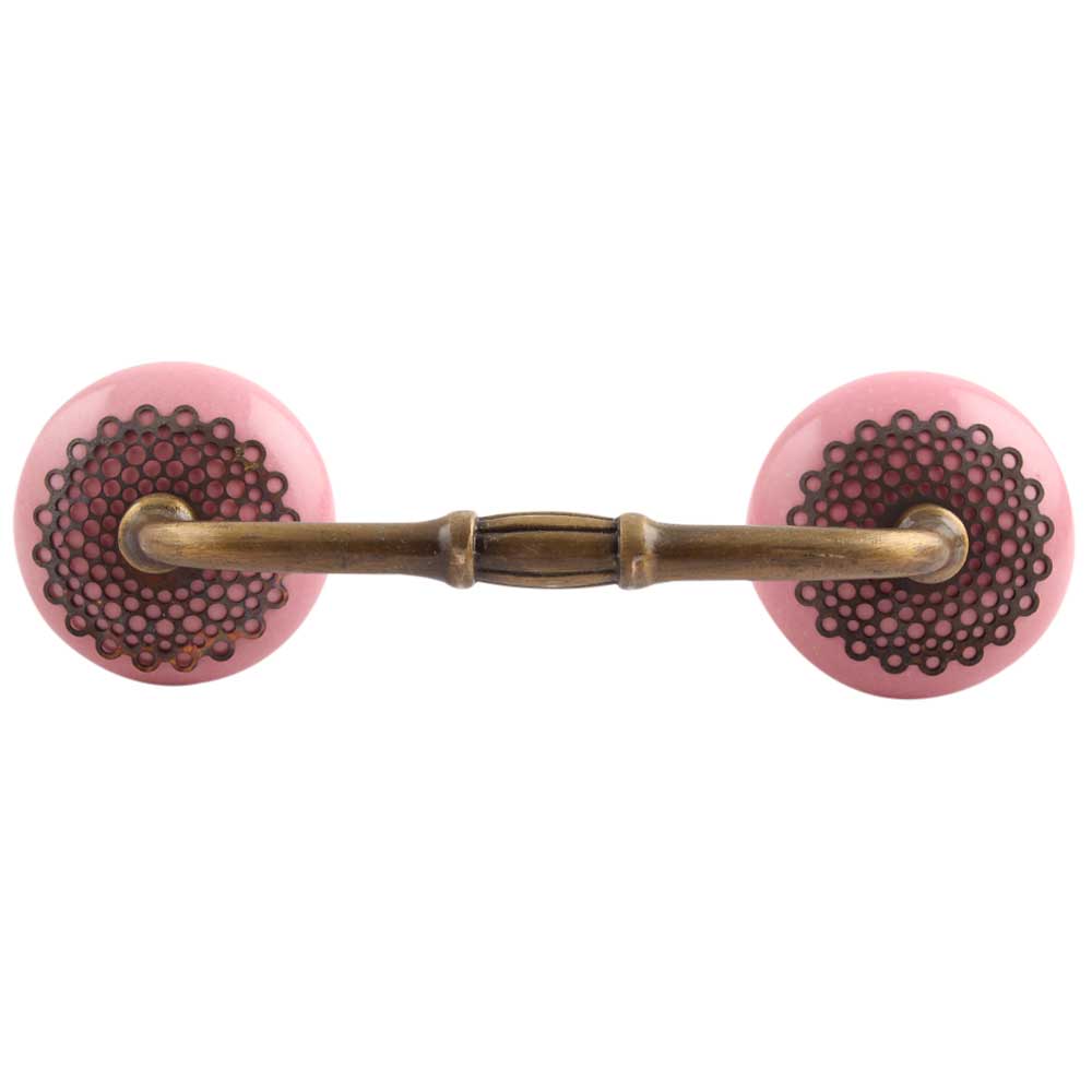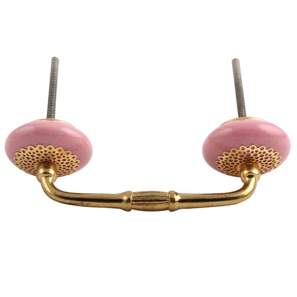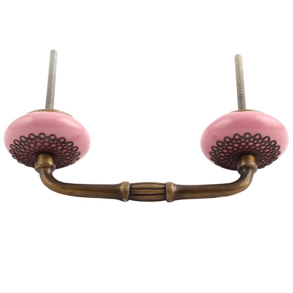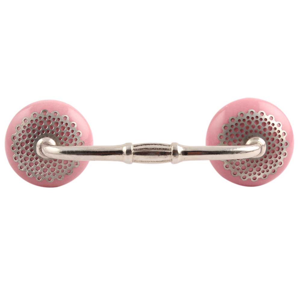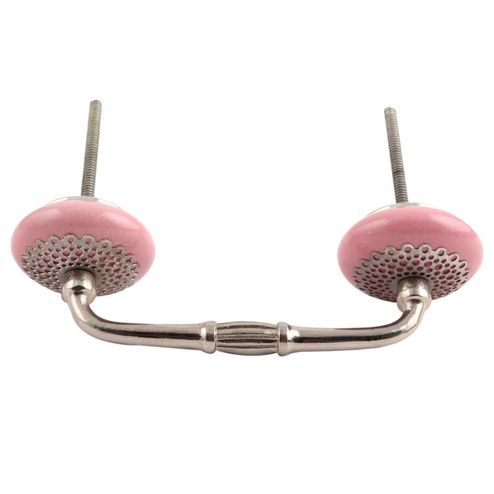 Pink Strewn Flat Ceramic Bridge Handle. Ideal for Drawer, Dresser, Cabinet, Wardrobe, Cupboard and Almirah.