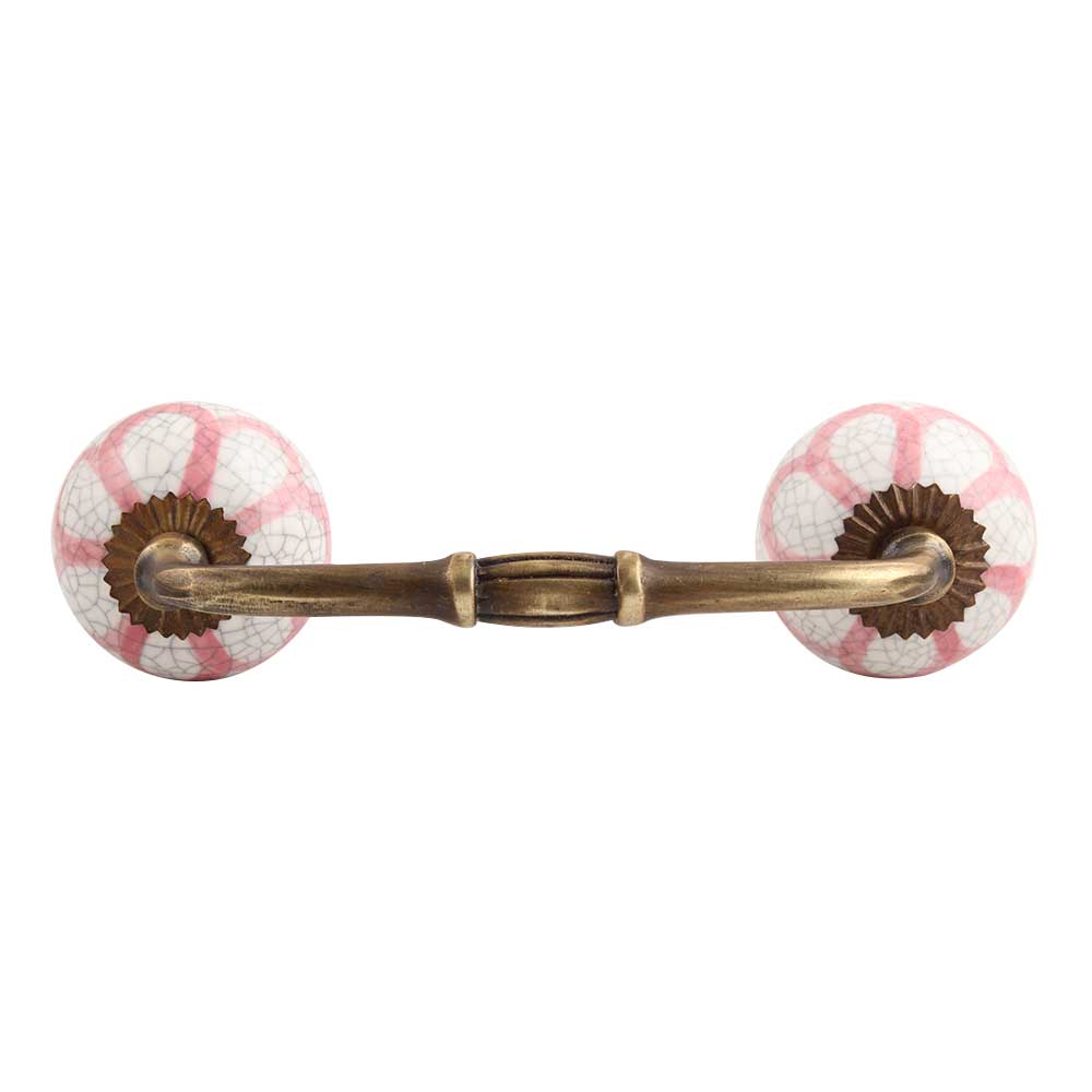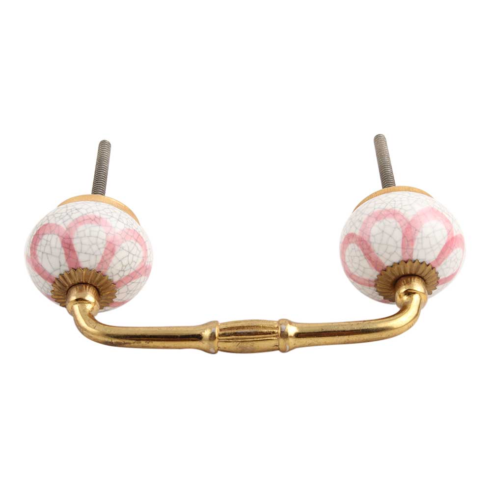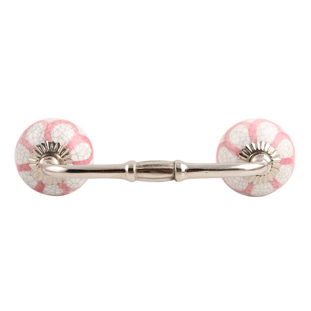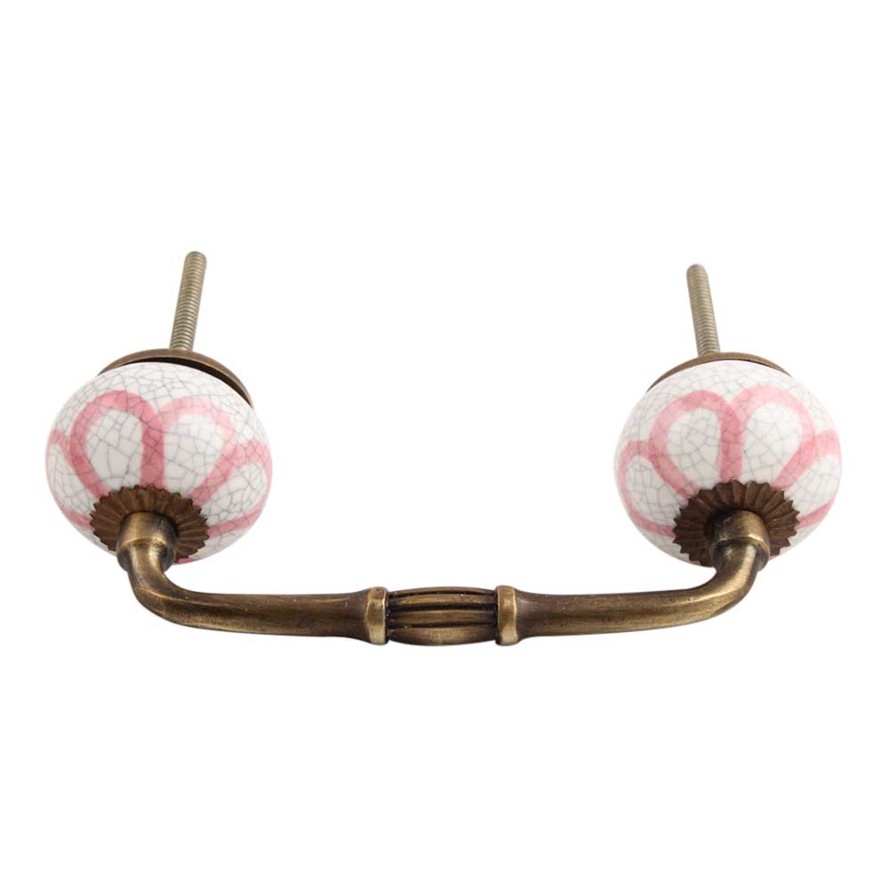 Pink Sunflower Cackle Ceramic Bridge Handle. Ideal for Drawer, Dresser, Cabinet, Wardrobe, Cupboard and Almirah.