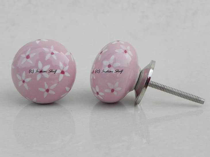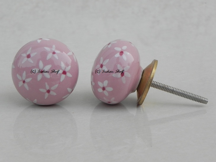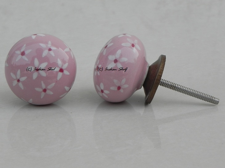 Pink Tiny Flower Ceramic Flat Knob. Ideal for kitchen cabinets, kitchen drawers, dining room, bed room, chest drawers, dressing tables, almirah