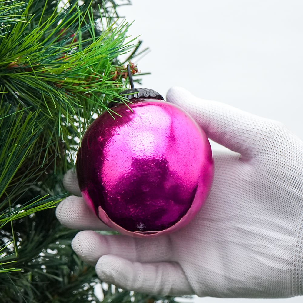 Pink Vintage Glass Round Style Hanging Ornament. Crafted from high-quality glass with a smooth glossy finish, this decorative bauble adds a classic and festive touch to Christmas trees, wreaths, and holiday displays.