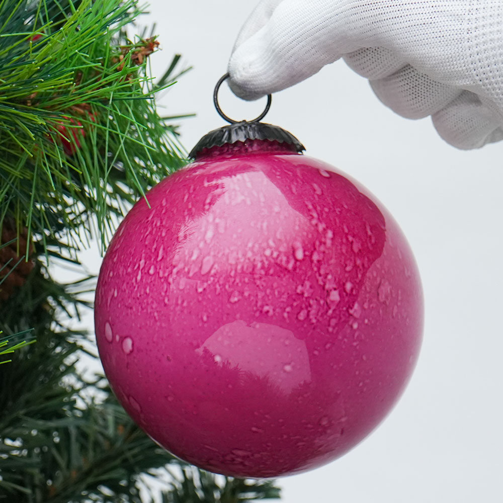 Pink Vintage Round Glass Christmas Ornament. Crafted from high-quality glass with a smooth glossy finish, this decorative bauble adds a classic and festive touch to Christmas trees, wreaths, and holiday displays.