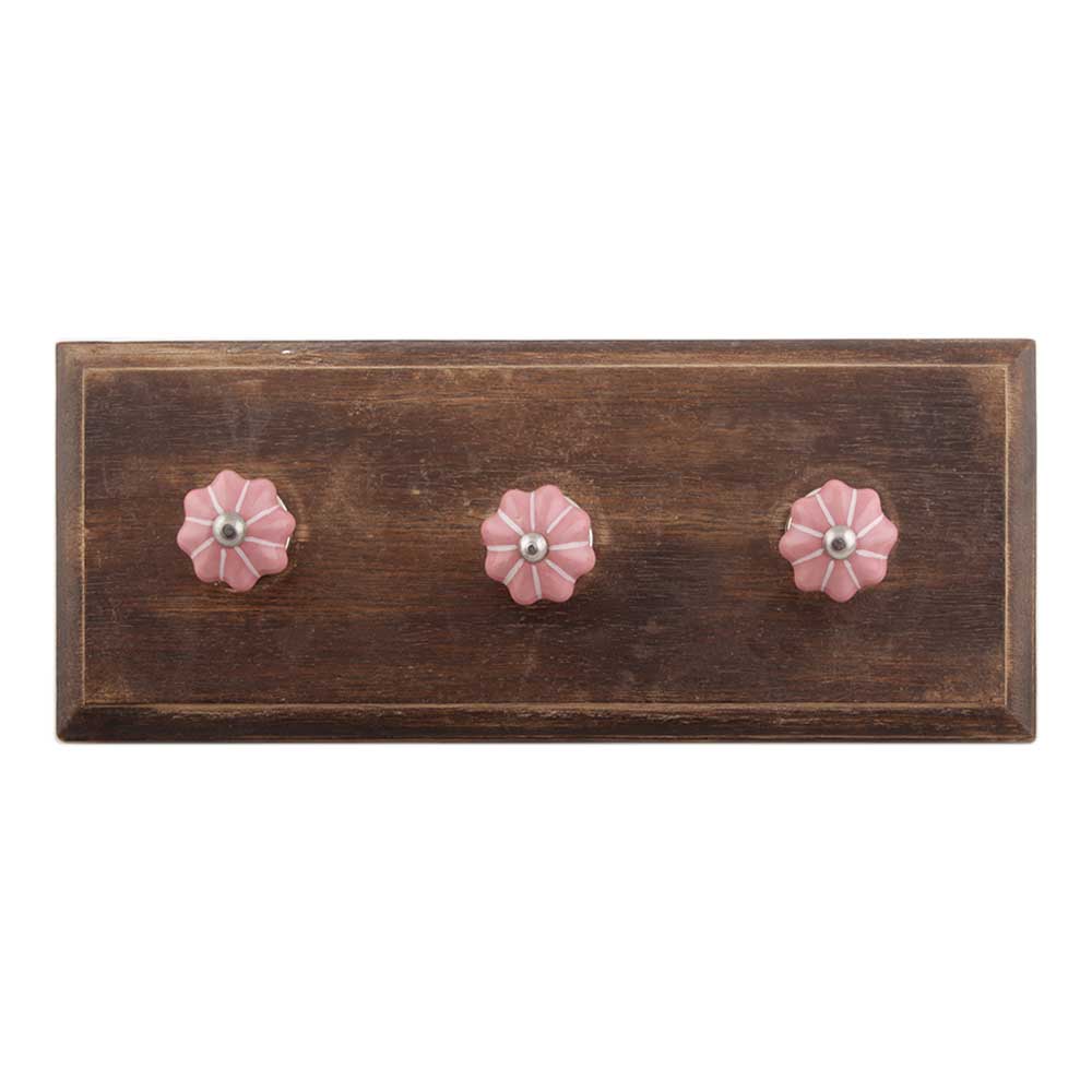 Pink With White Line Small Ceramic Wooden Hook. A Perfect Complement to the Soft Tone of the Wood are these White Traditional Hat and Coat Hook Made of Genuine Porcelain and Brass. It can be used to Hang Jewelry, Leashes, Towels, Scarves, Light Weight Sweaters, Caps etc.