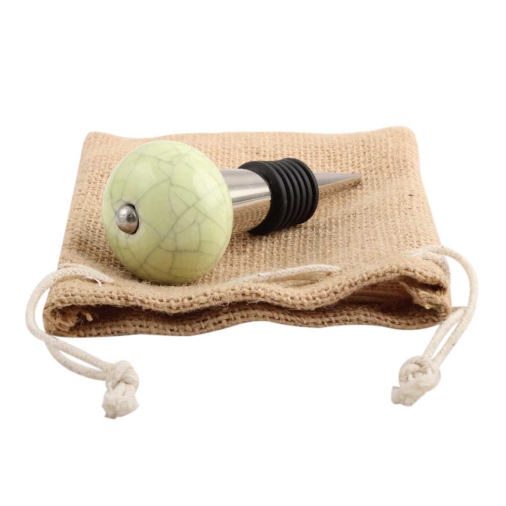 Pistachio Green Crackle Ceramic Wine Stopper.zinc alloy wine bottle stopper with attractive Jute Bag Packaging.