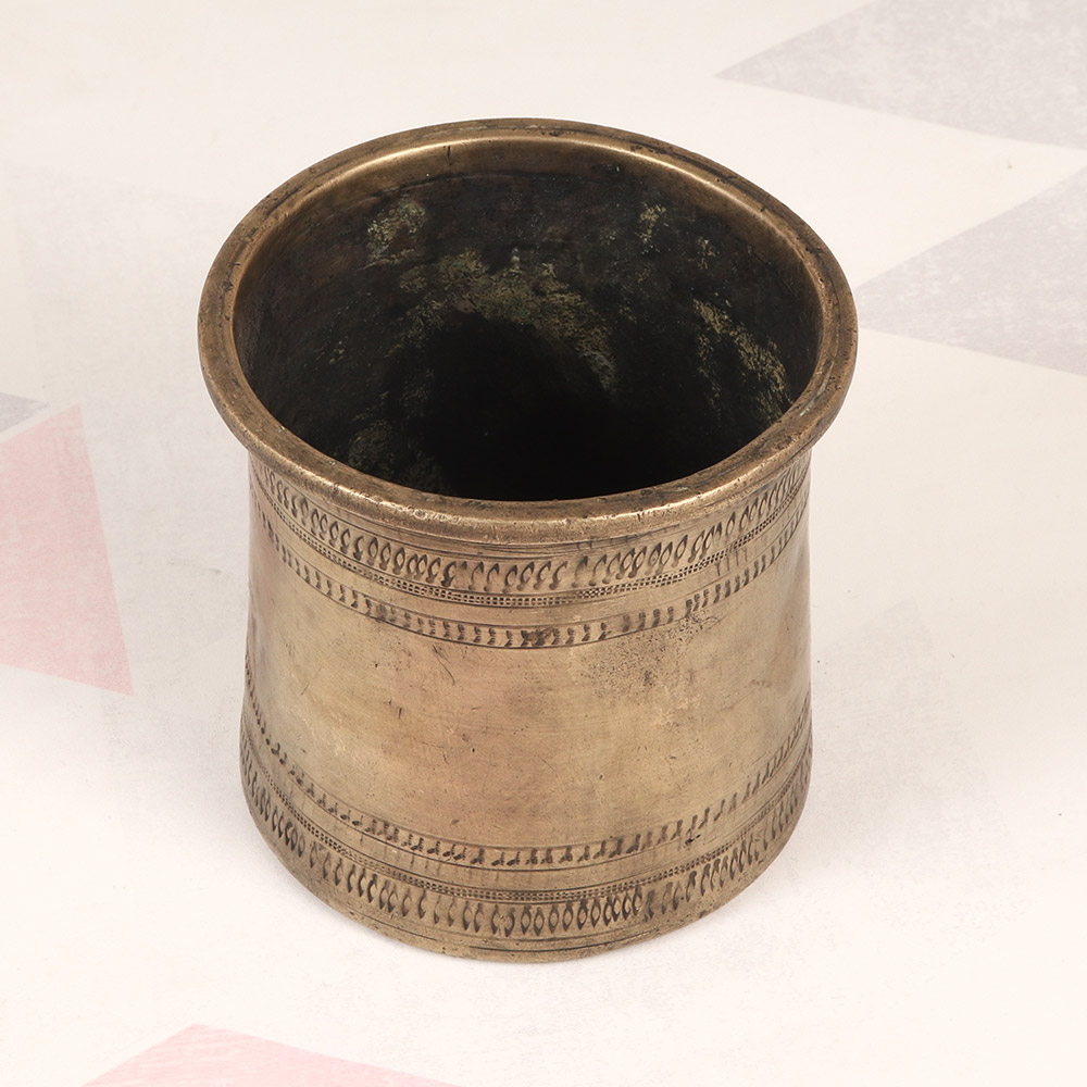 Immerse yourself in the rich cultural heritage of South India with this captivating brass panchpatra pot. Meticulously crafted by skilled artisans, this exquisite vessel is a testament to the region's enduring tradition of fine metalwork. Crafted from premium-quality brass, this panchpatra pot boasts a plain brown finish that exudes a timeless, vintage aesthetic. The unique five-lobed shape adds a touch of visual interest, making it a true standout piece that will command attention in any setting. Beyond its stunning appearance, this panchpatra pot is built to last. Its sturdy construction ensures it will withstand the test of time, becoming a cherished heirloom that can be passed down through generations. Use it to display fresh flowers, dried botanicals, or simply as a captivating centerpiece that elevates the ambiance of your home. Whether you're a lover of traditional decor or simply appreciate the beauty of handmade, artisanal pieces, this brass panchpatra pot is the perfect addition to your space. Embrace the rich cultural heritage and timeless charm of this exquisite vessel, and let it inspire you to surround yourself with the beauty of the past.