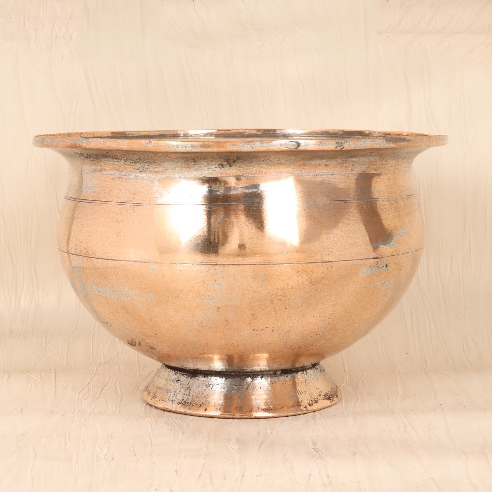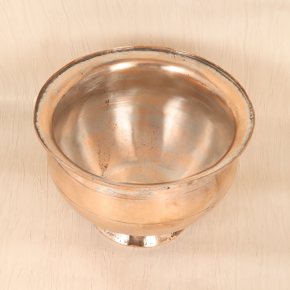 Introduce the captivating essence of Islamic artistry into your home with this exquisite copper fruit bowl, a statement piece that will elevate your dining experience. Meticulously crafted by skilled artisans, this bowl features intricate patterns and motifs that pay homage to the region's iconic design heritage, infusing your space with a touch of cultural sophistication. Beyond its visual appeal, this bowl's sturdy copper construction ensures exceptional durability, resisting tarnish and corrosion for years to come. The generous diameter provides ample space to beautifully display a bountiful array of fresh, seasonal produce, creating a visually stunning centerpiece that will captivate your guests. Versatile in its design, the bowl's plain brown finish seamlessly complements a variety of décor styles, from rustic and earthy to modern and minimalist. Pair it with natural wood accents and lush greenery for a harmonious, nature-inspired look, or let it shine as the focal point of a more formal, elegant dining area. Elevate your everyday with this captivating copper fruit bowl, a timeless piece that celebrates the rich cultural heritage of the Islamic world while adding a touch of refined sophistication to your home.