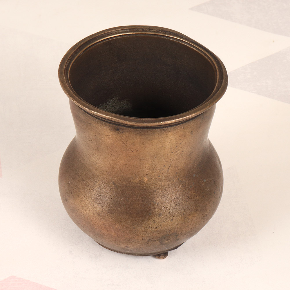 Immerse yourself in the timeless wisdom of India's spiritual heritage with this exquisite brass holy panchpatra pot. Crafted with meticulous attention to detail, this vintage vessel from South India is a stunning centerpiece for your daily rituals and meditations, infusing your practice with deeper meaning and connection. This panchpatra pot is more than just a functional tool - it's a work of art that can transform your spiritual journey. Its grounding presence will help you feel a profound sense of reverence as you perform your daily rites, allowing you to cultivate a deeper connection to the divine. Whether you're a devoted Hindu practitioner or someone seeking to introduce more mindfulness into your life, this panchpatra pot is an invaluable addition to your home. Its timeless design and high-quality craftsmanship will inspire you to establish a daily habit of gratitude, reflection, and inner peace. Elevate your spiritual practice and create a sacred space in your home with this stunning brass masterpiece.