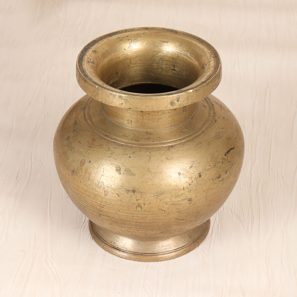 Discover the captivating beauty and profound significance of this vintage brass holy water pot, crafted in the enchanting style of South Indian art. This stunning vessel is more than just a functional object - it's a work of art that will transform your sacred space and deepen your spiritual connection. Imagine the feeling of pouring blessed water from this breathtaking brass pot, connecting you to centuries of spiritual tradition. The plain brown finish allows the natural beauty of the metal to shine, creating a serene and contemplative atmosphere perfect for meditation, prayer, or simply admiring its timeless allure. Whether you're looking to elevate your personal rituals or seeking a thoughtful gift for a loved one, this vintage brass holy water pot is a true testament to the enduring artistry of South India. Its simple yet elegant design will become a cherished centerpiece in any sacred space, infusing your home with the enchanting essence of this rich cultural heritage. Embrace the captivating beauty and profound significance of this stunning vessel, and let it inspire you to deepen your spiritual practice and connect with the timeless wisdom of South Indian art.