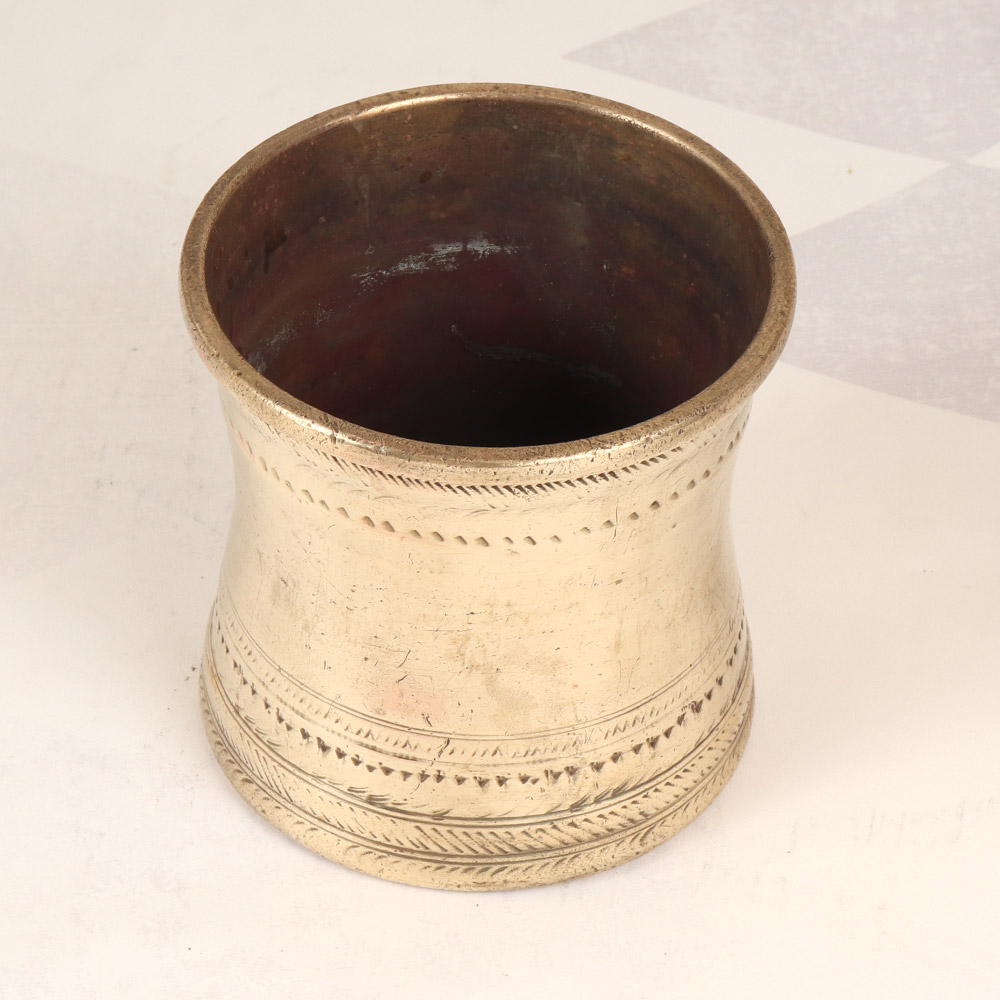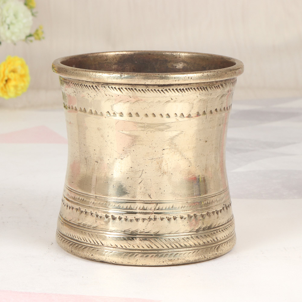 Elevate your rituals and infuse your sacred spaces with the captivating essence of South Indian tradition. Introducing the exquisite brass Panchpatra pot, a masterpiece of artisanal craftsmanship that celebrates the rich cultural heritage of this ancient land. This stunning Panchpatra pot is more than just a functional vessel; it's a work of art that will captivate and inspire you. Its timeless design and profound symbolism will elevate your spiritual practices, guiding you on a transformative journey of self-discovery and connection with the divine. Whether you're a devoted practitioner or simply seeking to infuse your home with a touch of cultural richness, the Panchpatra pot is the perfect addition to your ritual collection. Embrace the ancient wisdom of South India and let this exquisite vessel become a cherished centerpiece in your sacred space, where it will inspire you to deepen your spiritual practice and celebrate the enduring beauty of tradition.