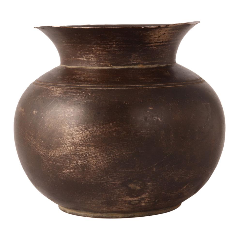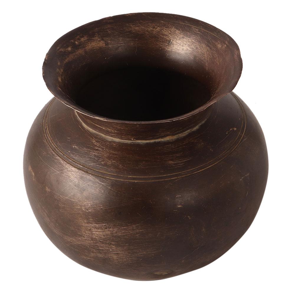 Brass Pot with plain sides made of superior brass by expert Indian craftsman. A sturdy brass pot used for storing water in temples or other religious places.