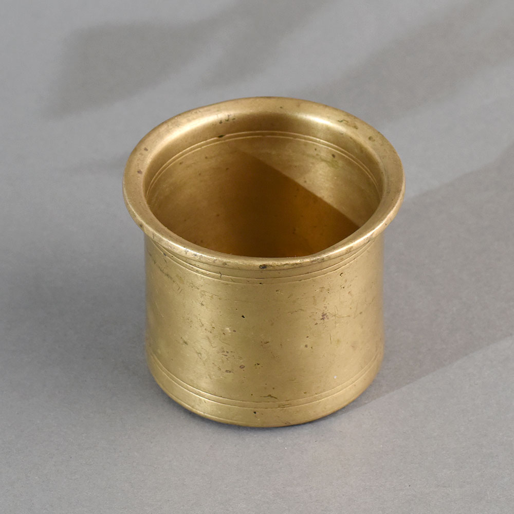This beautifully crafted brass holy water pot is a fine example of traditional Indian metalwork, often used in Hindu religious ceremonies and spiritual practices. Designed for practicality and symbolism, it features a cylindrical body with a broad rim, making it easy to hold and pour. The warm golden hue of brass not only gives it an antique charm but also reflects its spiritual purity, as brass is believed to have protective and purifying properties in many Indian cultures. Ideal for use in puja rituals, this holy water pot (also known as a "Panchapatra" or "Kamandalu" in some traditions) holds sacred water used for offerings, purification, and blessings. Its sturdy structure and minimalist design embody the elegance and utility of traditional Indian ritual tools.
