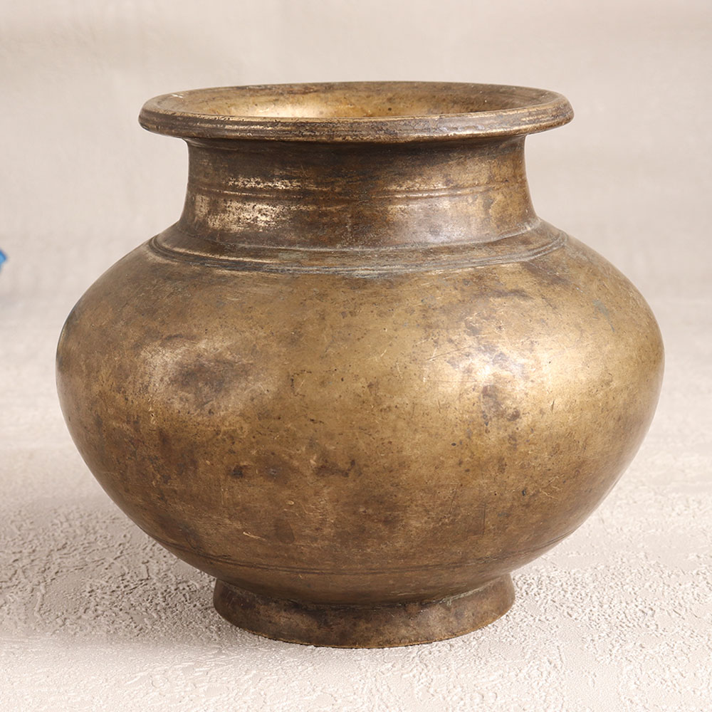 This vintage brass holy water pot with an antique brown finish is crafted by skilled Indian artisans hailing from the vibrant region of Rajasthan, India. Fashioned from high-quality brass, this piece reflects the craftsmanship and artistry that has been passed down through generations. This elegant holy water pot is not just a religious artefact, it's a versatile addition to your living or working space. Whether it graces your home, office, hotel, cafe, shop, or restaurant prayer room, it serves both a spiritual and decorative purpose. Use it during your prayers or meditation, filling it with holy water for blessings and serenity. When not in use, it transforms into a charming small flower pot, adding a touch of vintage beauty to any setting. If you're an antique enthusiast, this pot is a must-have, enriching your collection and making an eye-catching display at exhibitions. Furthermore, it's a thoughtful gift for your family, friends or relatives during special, festive, or auspicious occasions, symbolizing both tradition and elegance.