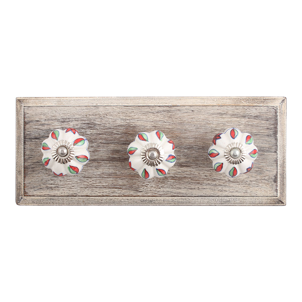 Plumeria Mystical Flower Ceramic Wooden Hook. A Perfect Complement to the Soft Tone of the Wood are these White Traditional Hat Coat Hook Made of Genuine Porcelain and Brass. It can be use to Hang Jewellery, Leashes, Towels, Scarves, Light Weight Sweaters, Caps Etc.