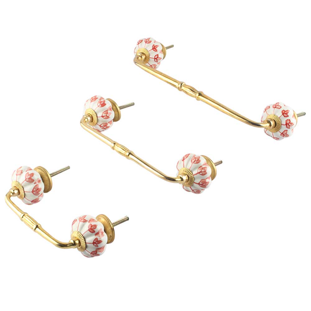 Poopy Flower Ceramic Bridge Handle. Ideal for Drawer, Dresser, Cabinet, Wardrobe, Cupboard and Almirah.