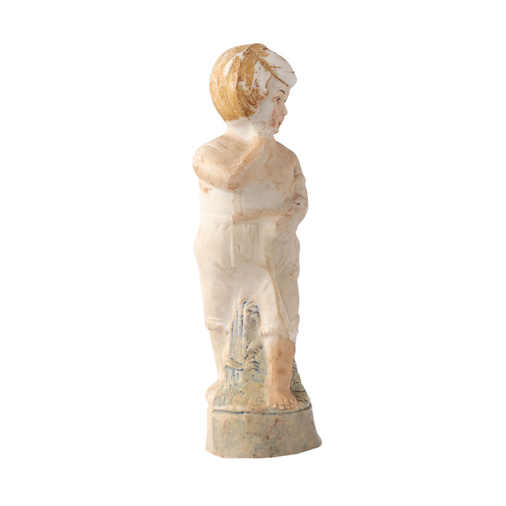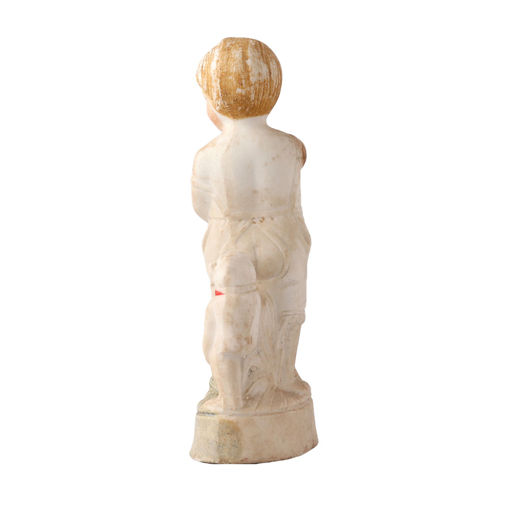 A girl and her kitten are depicted in a hand-made porcelain statue. The girl is sitting on a rock and is deeply contemplative. She is holding her red-collared kitten while wearing a dress. Use it to decorate your home and give it as a gift to loved ones.