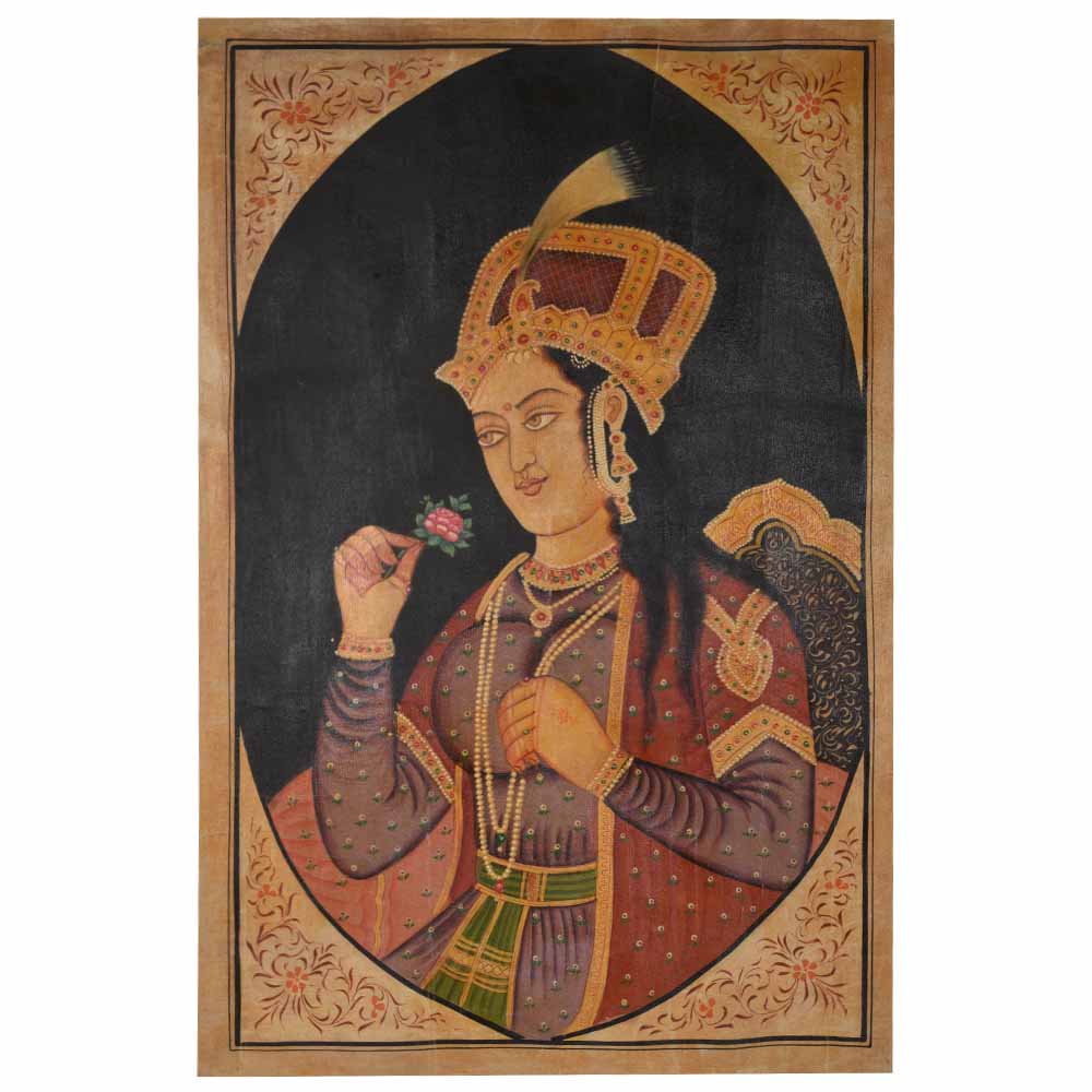 This is portrait Mughal painting of Mumtaz Mahal from the Mughul dynasty. Mumtaz Mahal was a talented poet as well as a skilled archer. She and her husband enjoyed watching elephant fights. She must have been well-read in the sciences and literature in classical languages, as she sat atop a marble pavilion by the River Jumna, engaging in calligraphy and painting. Women were builders and architects in Mughal harams. Mumtaz Mahal designed one such garden in Agra, and it has withstood the test of time.