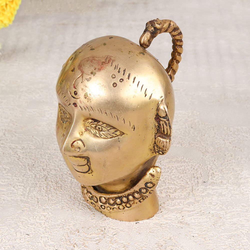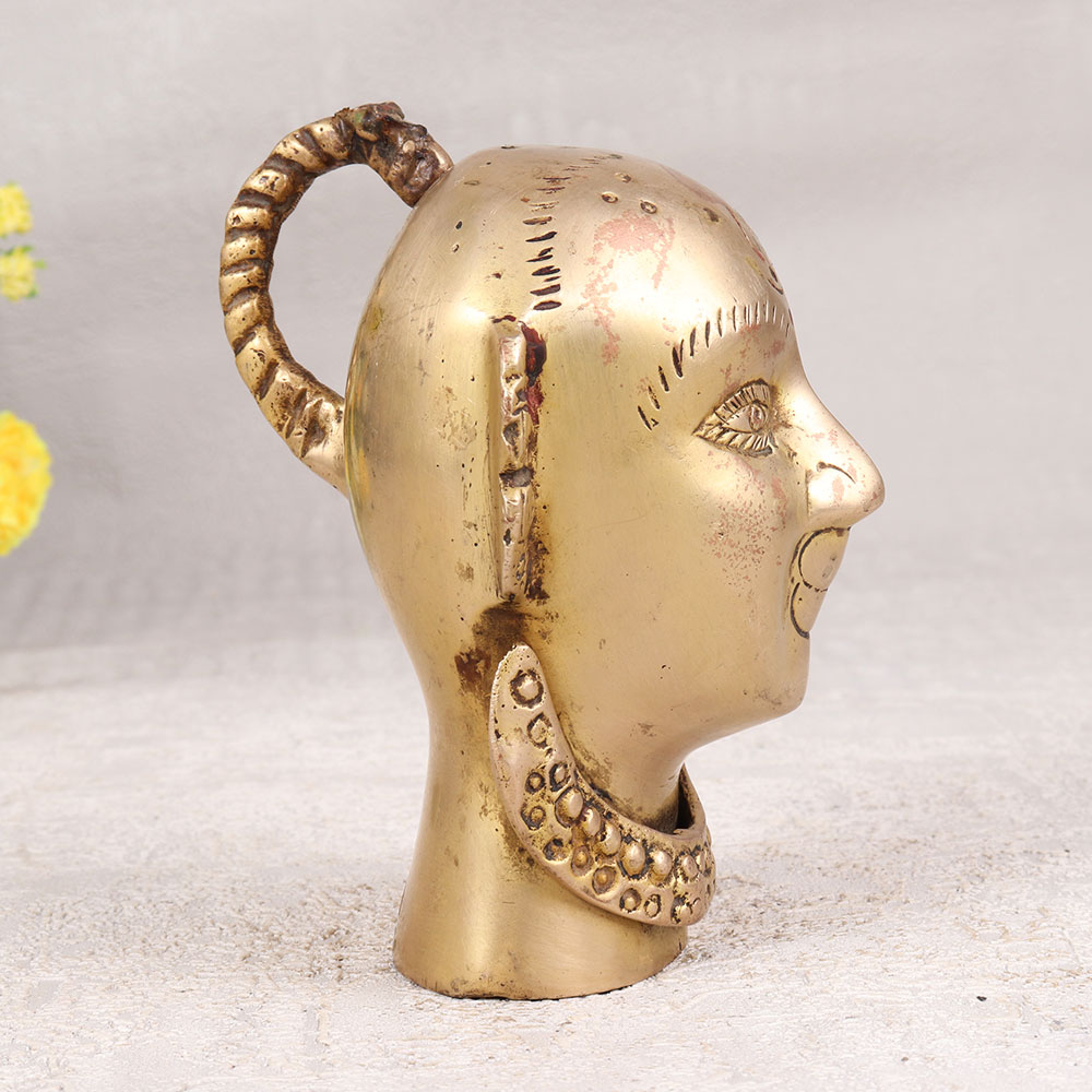 Immerse your space in divine elegance with our Vintage White Brass Gauri Head Statue that is a captivating embodiment of Goddess Parvati. Handcrafted by highly talented Indian artisans from the enchanting land of Gujarat, this statue showcases their unparalleled craftsmanship. Cast from high-quality white Brass, the statue boasts a timeless appeal, accentuated by a lustrous golden finish that radiates opulence. Ideal for adorning your home, office, restaurant, hotel, or cafe prayer room, this exquisite piece seamlessly blends spirituality with artistry. Elevate your surroundings with a touch of tradition, as this statue effortlessly complements both contemporary and classic decor. A splendid addition to any vintage collection, it serves as a unique centerpiece for your sacred or decorative spaces. Celebrate special, festive, or auspicious occasions by gifting this masterpiece to your family, friends or relatives.