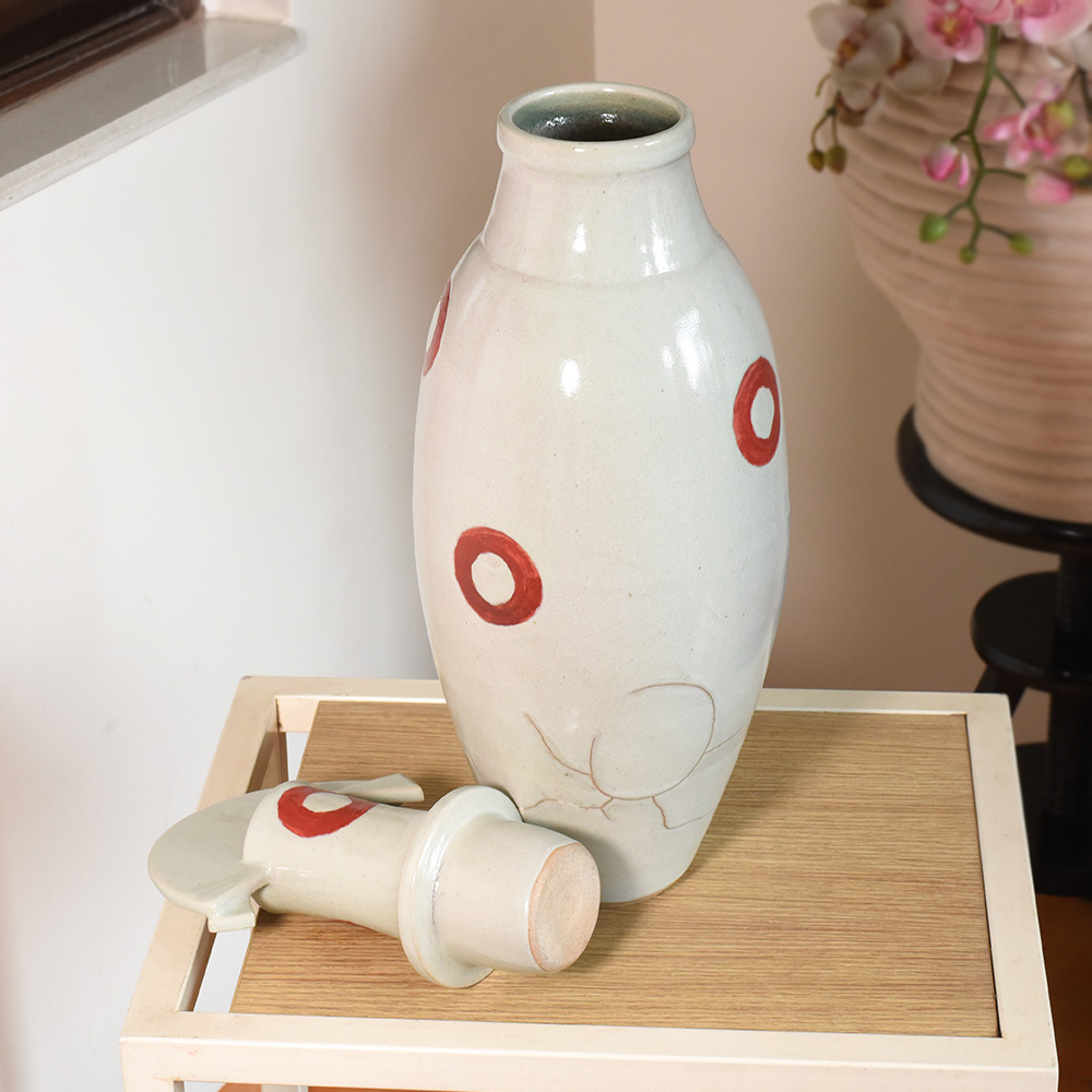 Ceramic Artist Meena Vohra brings her signature artistry to this circle motif vase. The vessel is etched with repeating rounds creating rhythm and balance as a modern accent for contemporary homes. Each piece is handmade packed and quality checked by Indianshelf. Circle Pattern Vase with Artistic Symmetry Geometric circles dance across this vase creating a rhythmic pattern. The repetitive motif adds modern interest while its neutral tones keep the look grounded and elegant. Vase adorned with repeating circles carved into its surface Molded and finished by hand by artisans Strong material retains its form and colour Creation Details and Provenance Origin: India. Safely packed and quality checked by Indianshelf Produced by hand with the guidance of experienced artisans Resilient glaze stands up to regular handling Styling Options and Opportunities Place on nightstands or lounge areas Ideal gift during religious ceremonies or rituals Useful accent in bookstore displays or libraries Suitable for themed weddings and destination celebrations Maintaining Your Circle Vase Dust lightly and avoid direct contact with liquids. Place it on a stable surface to prevent tipping. User Queries What do the circle patterns represent The repeating circles symbolise continuity and balance within the design. Is it suitable for minimalist decor Yes its subtle pattern complements both minimalist and modern interiors. Can it hold flowers The vase is functional and can hold fresh or dried stems. How do I clean the carved areas Use a soft brush to gently remove dust from the carved motifs. Craft Heritage Appreciation Dedication to craft and cultural legacy defines this piece. Hand forming ensures a unique outcome for every item.
