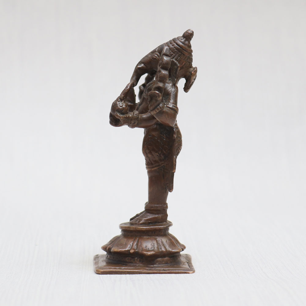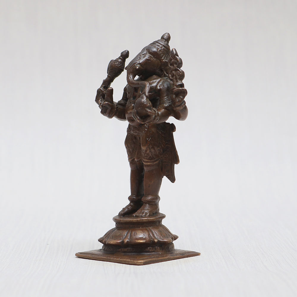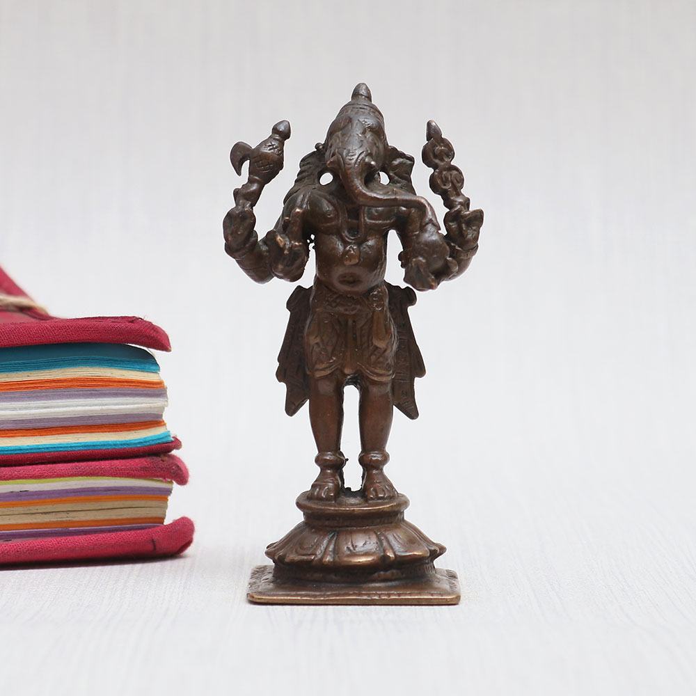 Discover the divine essence of spirituality with this Copper Lord Ganesha standing statue, meticulously handcrafted by skilled Indian artisans. Fashioned from high-quality copper and featuring a vintage-style finish, this stunning Ganesh idol is a perfect addition to your prayer room at home, office, restaurant, cafe, or shop. The intricate detailing of this Ganpati statue is truly eye-catching, making it an ideal centerpiece for exhibitions, decorations, and collections. This versatile masterpiece also serves as an auspicious gift for your loved ones on special, festive, or significant occasions. Enhance your spiritual journey, invite prosperity, and experience the blessings of Lord Ganesha with this beautiful Ganesh Ji statue. As a thoughtful gesture, it can also be placed on a car dashboard, fostering protection and guidance during travels.