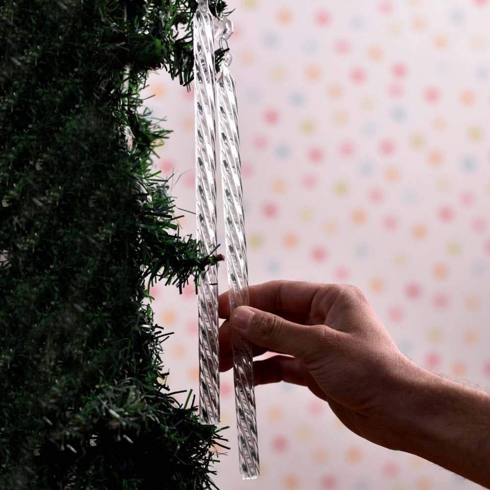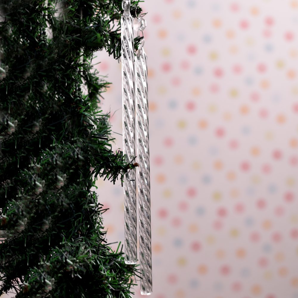 Celebrate the spirit of Christmas with our handmade Glass Christmas Ornament, a true masterpiece crafted by highly skilled and experienced Indian craftsmen. Each ornament is fashioned from premium quality glass, forming a delicate long stick made in an intricate and mesmerizing pattern. The clarity of the glass adds a touch of elegance, reflecting the twinkling lights of the season. This set of 6 glass ornaments is designed to grace your Christmas tree with enchanting beauty. Hang them with care to create a stunning display that will captivate hearts and fill your home with festive cheer. Their unique design makes them equally perfect as gifts for your family, friends or relatives on special occasions, adding a touch of tradition and craftsmanship to their celebrations.