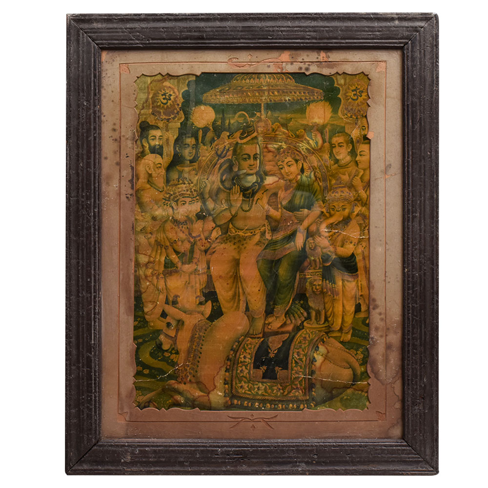 This print is more than just a decoration - it's a gateway to the divine. Lord Shiva, known as the "Destroyer" in the Hindu triumvirate, represents transformation, destruction, and the cycle of life. By displaying this powerful image in your home or office, you invite the blessings, protection, and spiritual enlightenment associated with this legendary deity. Whether you're a devout Hindu looking to deepen your practice, or simply someone drawn to the rich symbolism and artistry of Indian culture, this Print Of Lord Shiva Paravat On Bull In Original Wooden Frame will be a stunning addition to your space. Let the majesty of Lord Shiva inspire you every day and elevate your connection to the divine.
