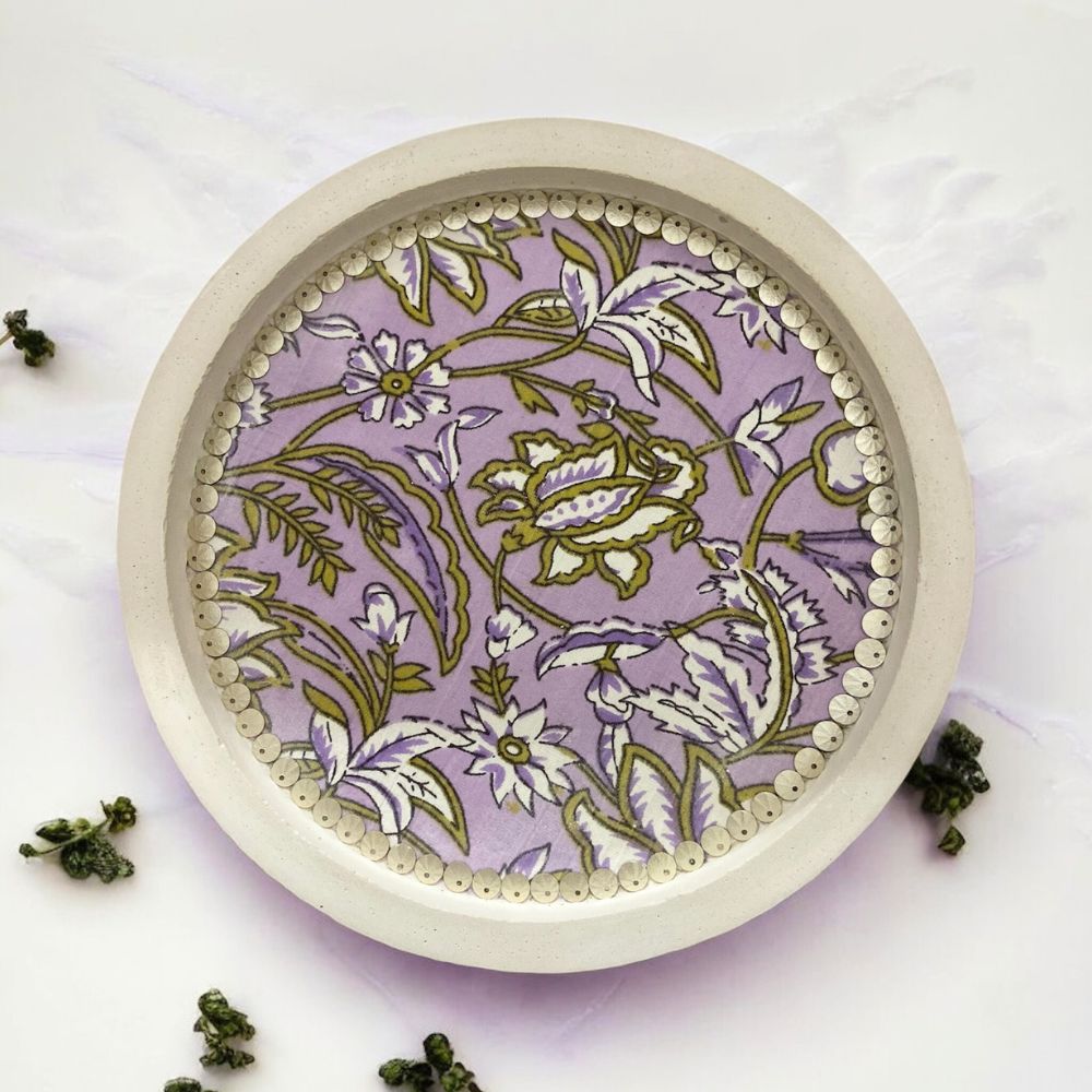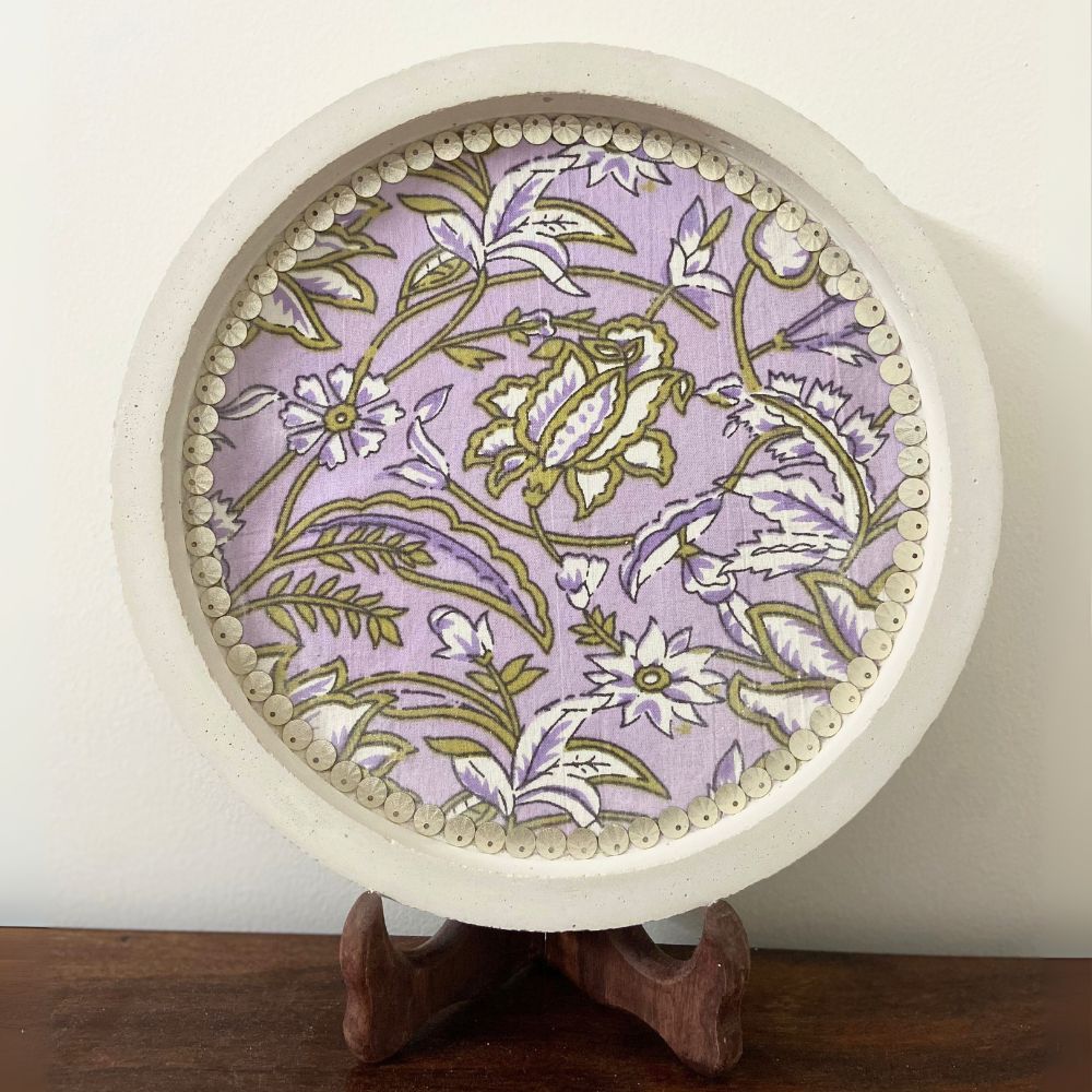 Elevate your interiors with this elegant Purple Cemented Plate for Home Decor, beautifully designed with intricate floral patterns. The soothing lavender base paired with earthy green detailing makes it a versatile accent piece for modern and traditional spaces alike. Perfect for wall displays, table styling, or gifting, this handcrafted plate adds timeless charm to your décor.