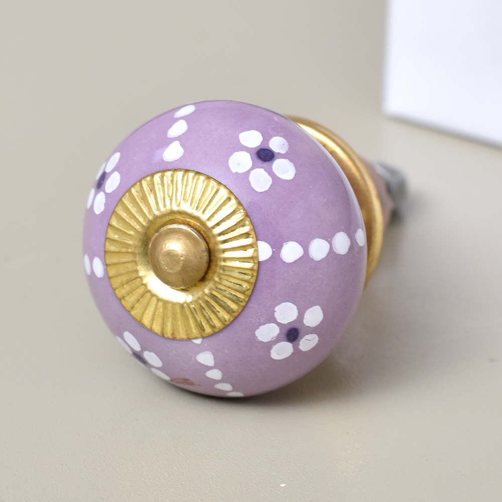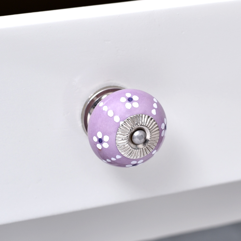 The floral pattern featured on the surface of the Purple Ceramic Floral Cabinet Knob adds a timeless and refined touch to any room. The delicate details of the flowers bring a sense of nature-inspired elegance, making it an ideal addition for those who appreciate traditional or whimsical design styles. The intricate design ensures this knob will be a decorative and functional element in your home for years to come.
