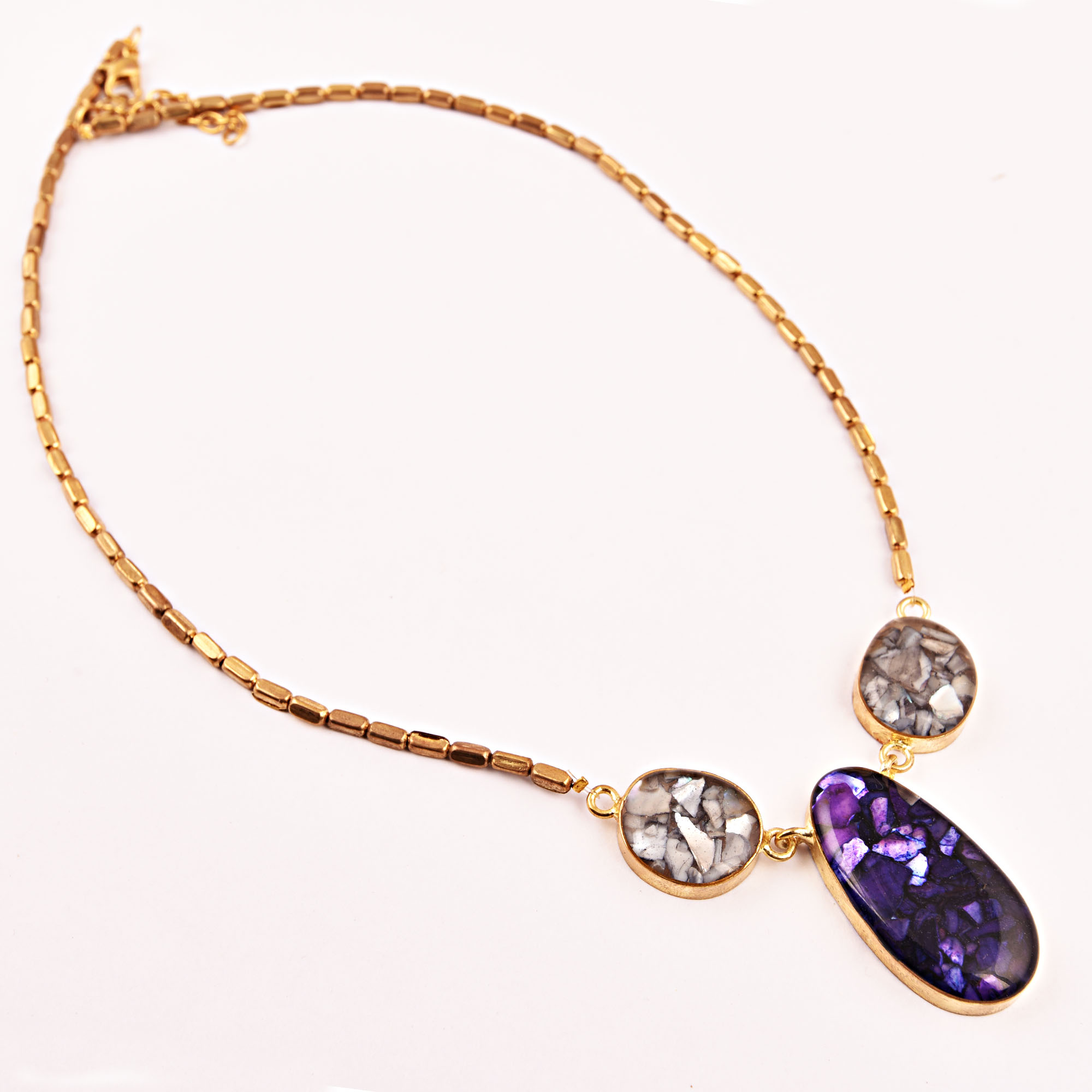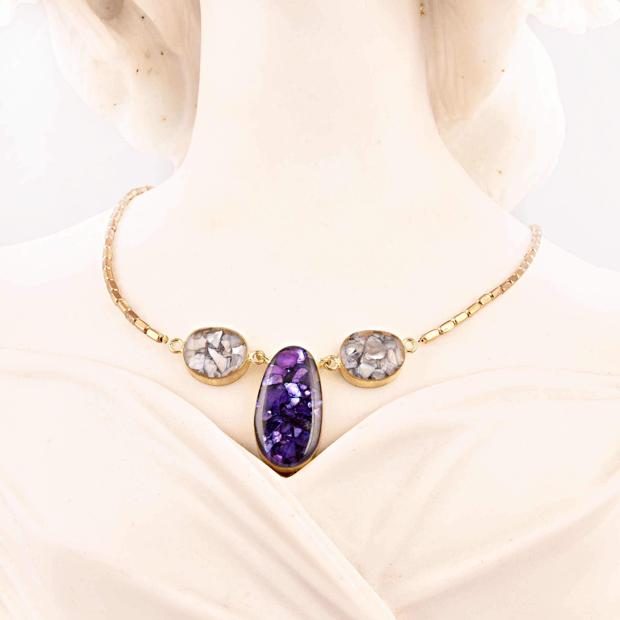 Purple Diva Necklace New Designer Jewellery. Resin, Glass with Chain and Clasp Made of Brass .