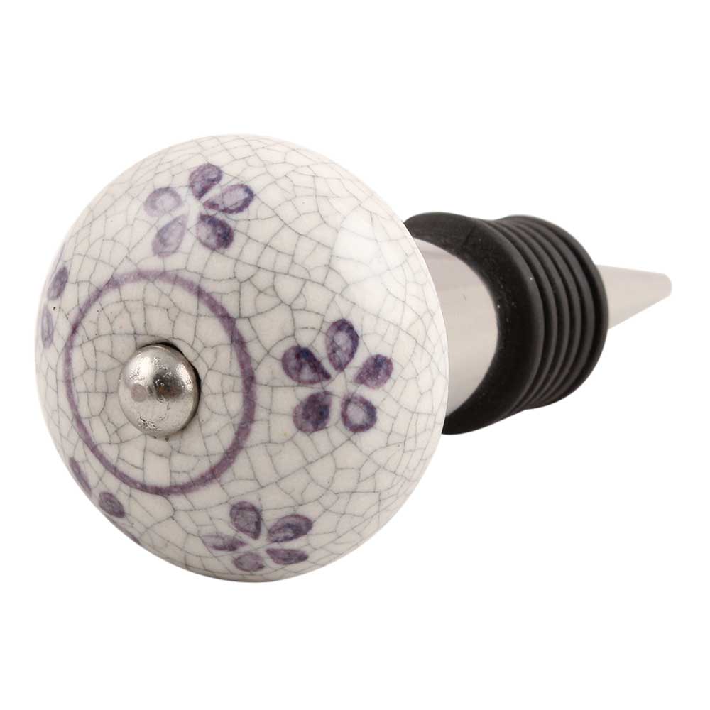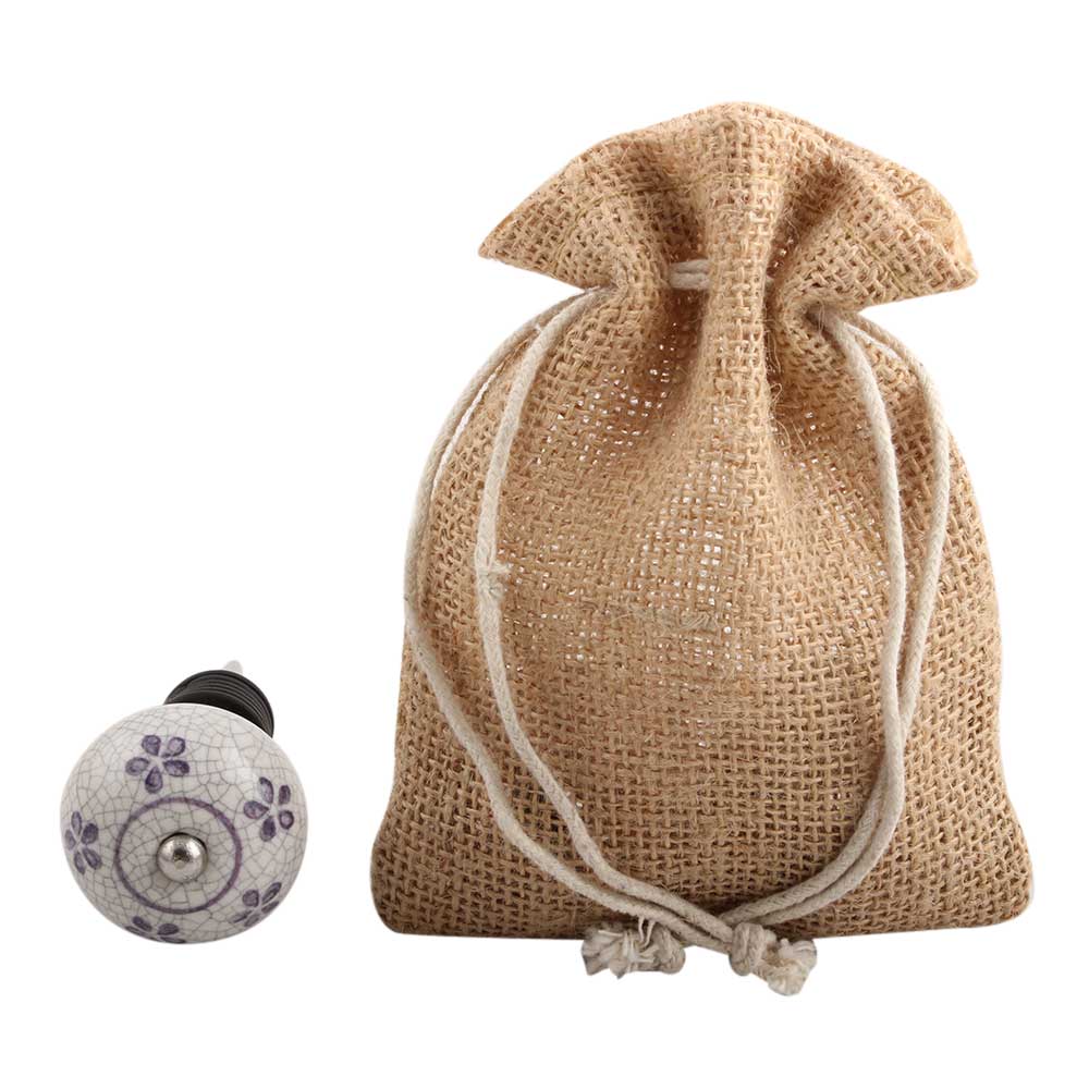 Purple Floral Crackle Ceramic Wine Stopper.Zinc Alloy Wine Bottle Stopper with Attractive Jute Bag Packaging.